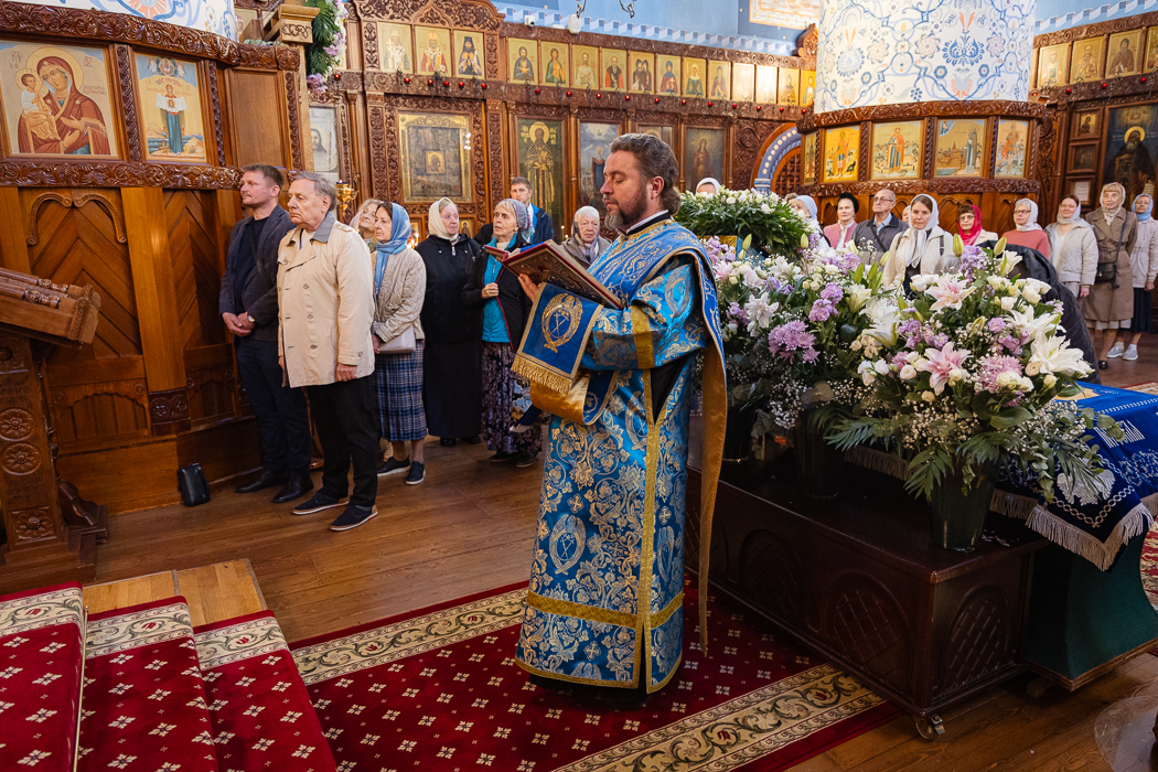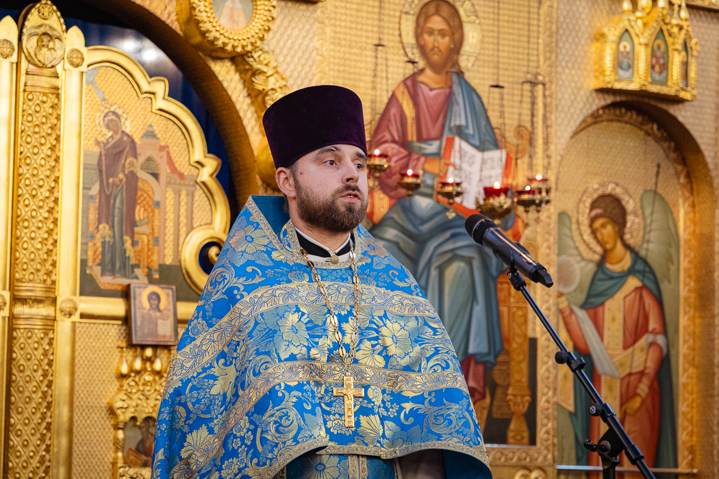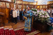 Настоятель поблагодарил правящего архиерея, поздравил с прошедшим юбилеем и подарил икону его небесного покровителя - святителя Варсонофия Тверского с образом Феодоровской Божией Матери в руках.