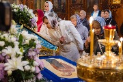 "Образ Федоровской Божией Матери появился в России примерно в двенадцатом веке, а название получил в честь князя Владимирского Феодора, - сказал владыка в проповеди. - Хранился образ в семье святого Александра Невского, князь был им благословлен на брак. Потом икона оказалась в Костроме: инокиня Марфа благословила им сына Михаила Феодоровича, первого в династии Романовых, на царство. Икона стала небесной покровительницей рода Романовых, которые правили в России более трехсот лет. В России чтили эту святыню, было много списков, один из них хранится в нашем соборе, где молилась царская семья. Люди почитали этот образ, намоленный со времен Александра Невского, и часто прибегали к нему в молитвах".