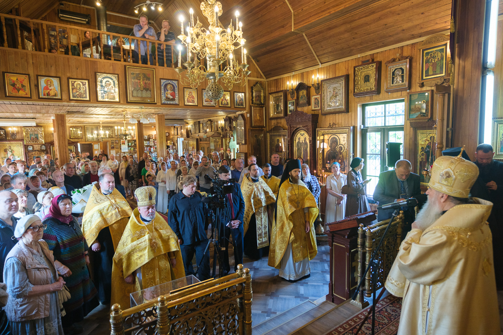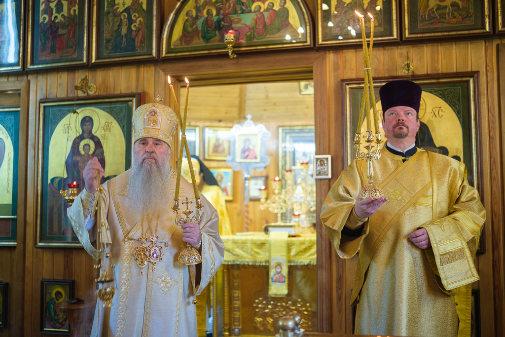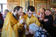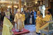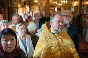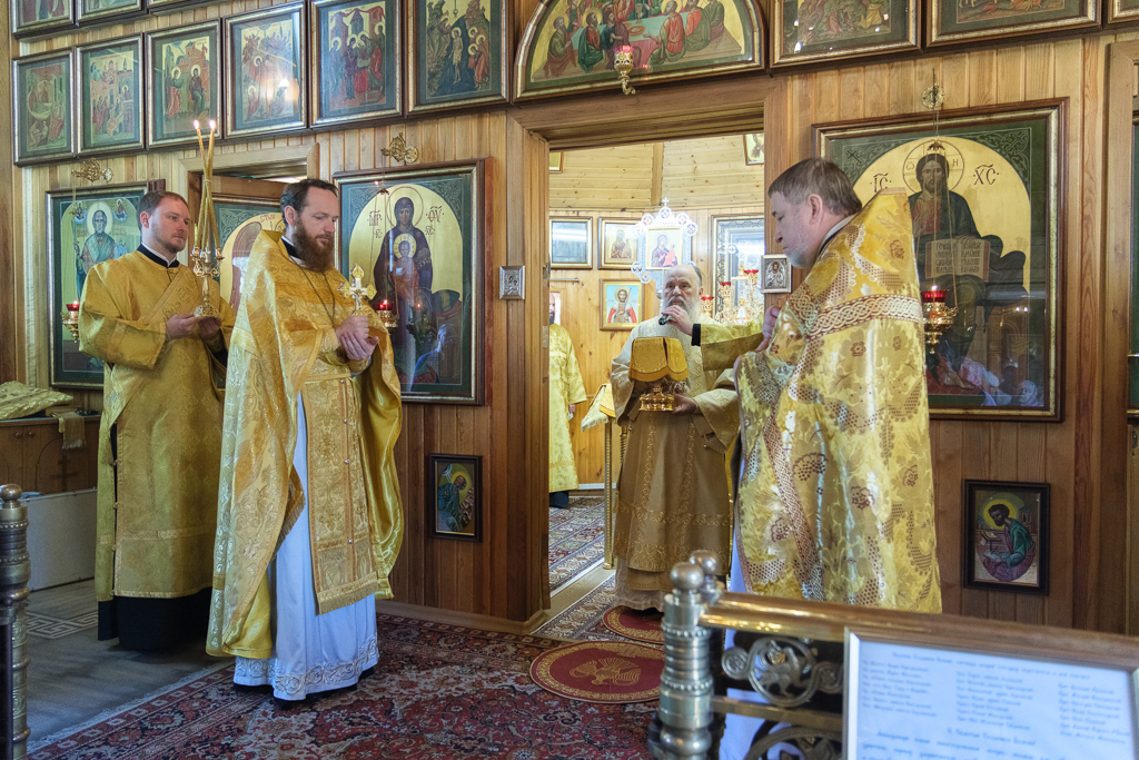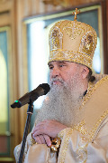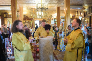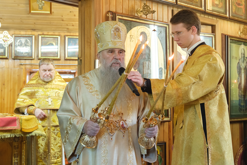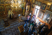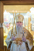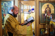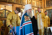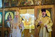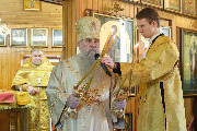Его Высокопреосвященству сослужили секретарь епархиального управления протоиерей Сергий Куксевич, благочинный Кировского округа протоиерей Валерий Дорохов, настоятель архимандрит Иринарх (Соловьев) с клиром и другие священнослужители.
