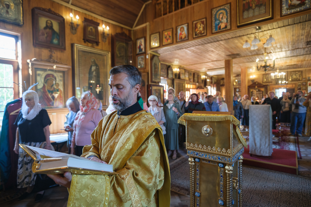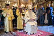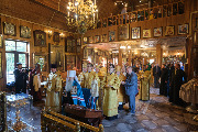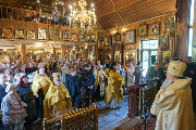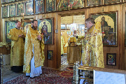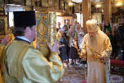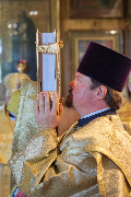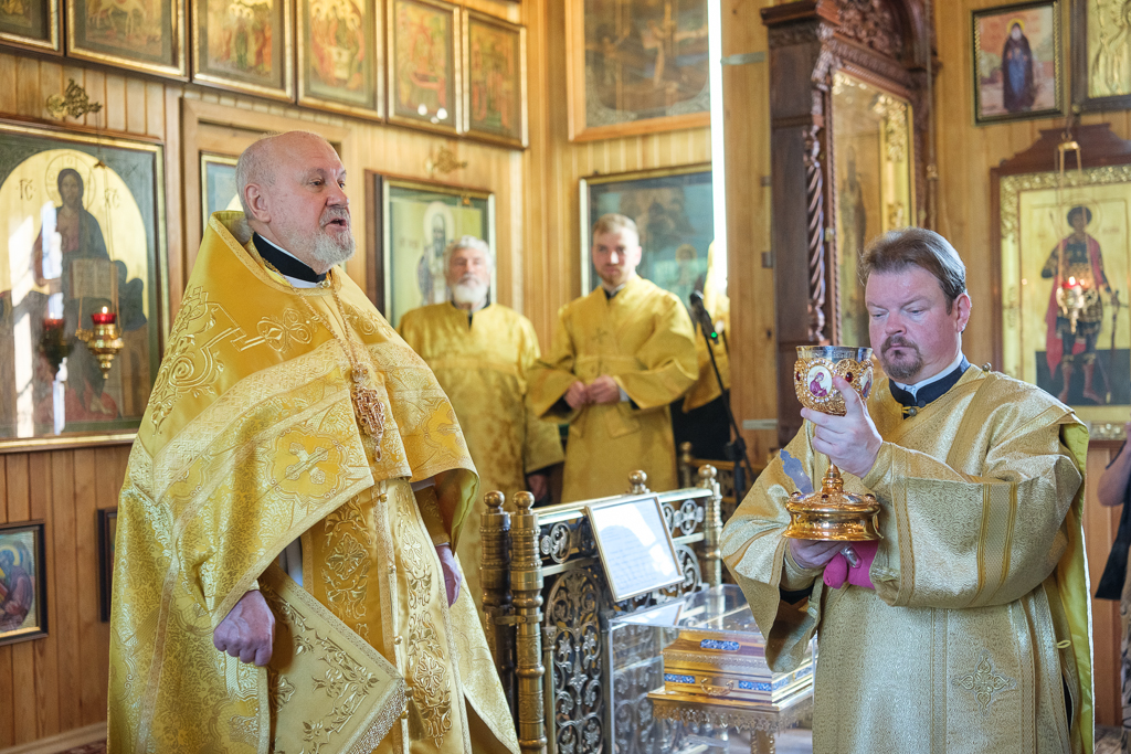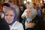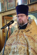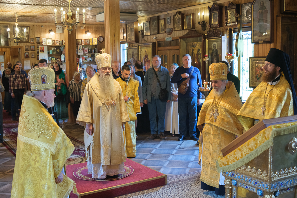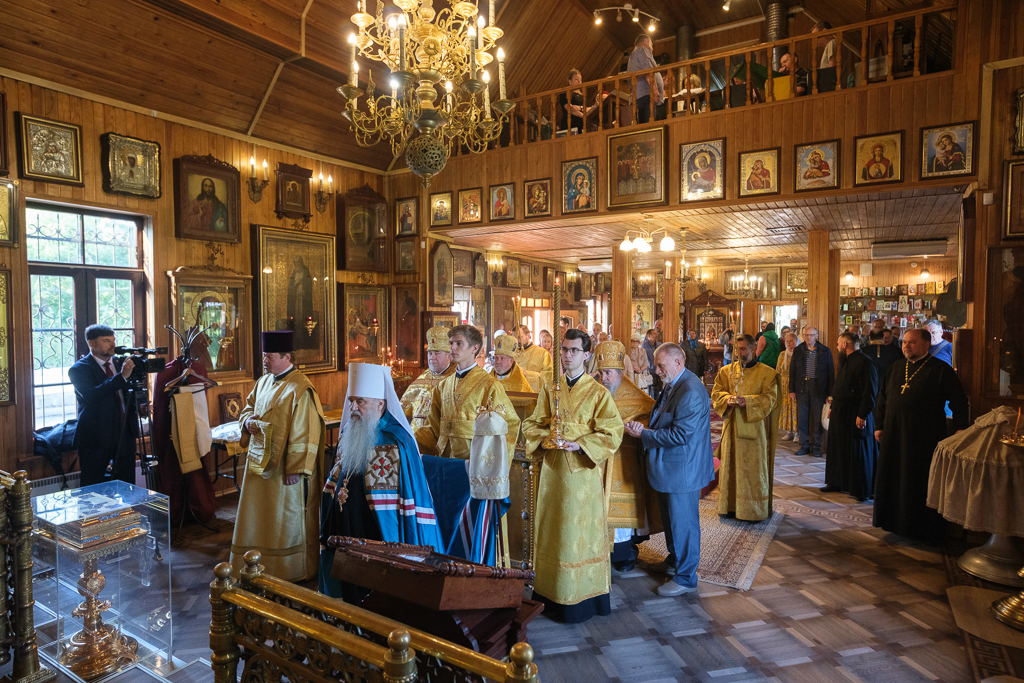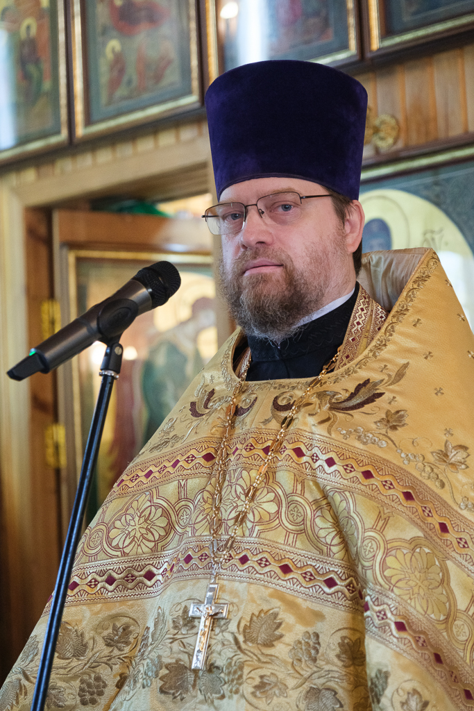 Его Высокопреосвященству сослужили секретарь епархиального управления протоиерей Сергий Куксевич, благочинный Кировского округа протоиерей Валерий Дорохов, настоятель архимандрит Иринарх (Соловьев) с клиром и другие священнослужители.