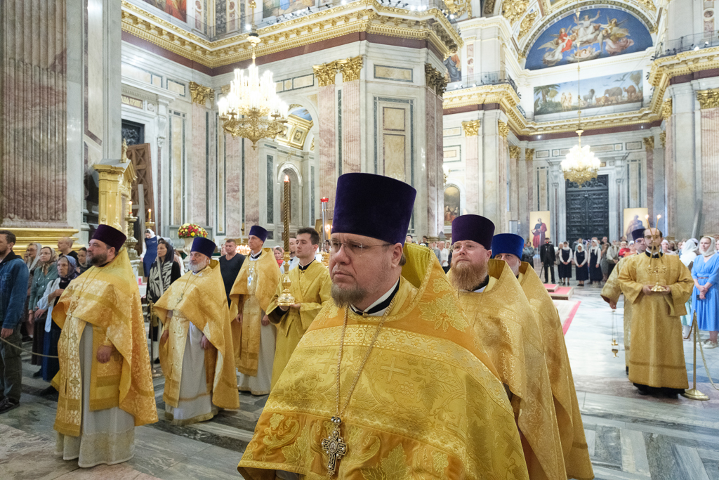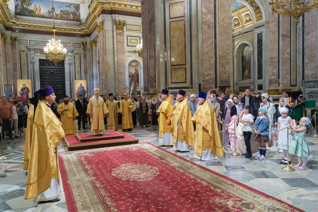 В Неделю 13-ю по Пятидесятнице, 7 сентября, митрополит Санкт-Петербургский и Ладожский Варсонофий совершил Божественную литургию в Исаакиевском соборе.