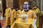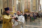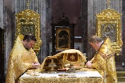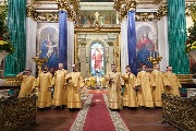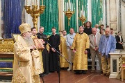 Его Высокопреосвященству сослужили секретарь епархиального управления протоиерей Сергий Куксевич, благочинный Адмиралтейского округа протоиерей Алексий Скляров, ключарь протоиерей Роман Ковальский с клиром и другие священнослужители.