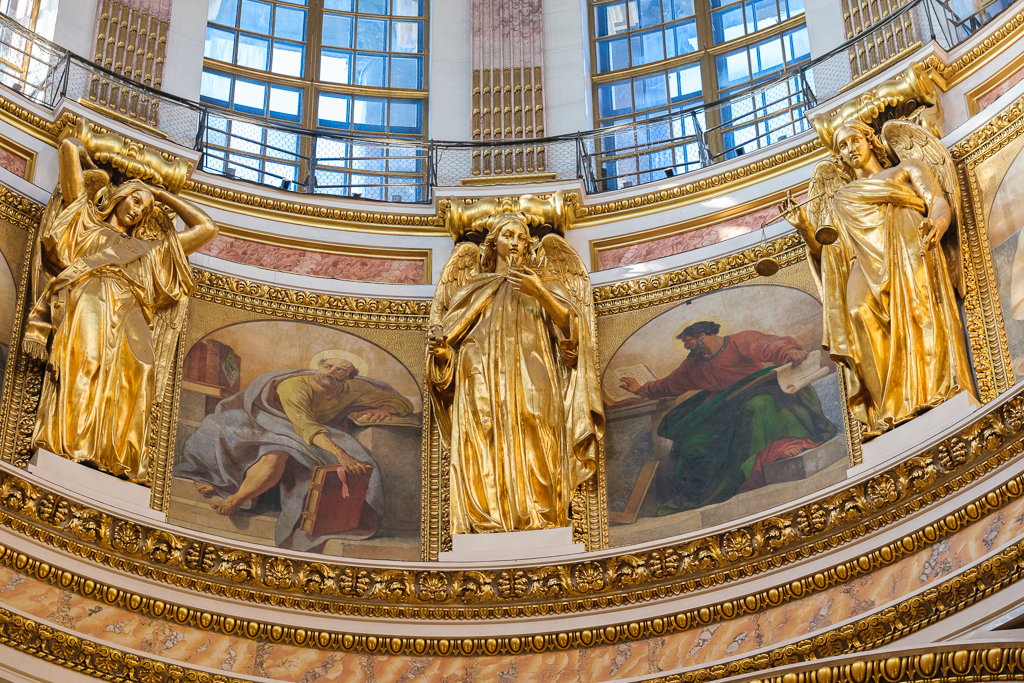 Собор преподобного Исаакия Далматского был задуман императором Петром I, который родился в день памяти этого святого. Современному храму предшествовали три храма, оказавшиеся недолговечными. Четвертый был заложен в 1819 году по проекту Огюста Монферрана. Строился 40 лет. Был освящен 12 июня 1858 года как главный собор Российской империи. Здесь совершались благодарственные молебны в памятные дни петровских побед, торжественно отмечали день основания Санкт-Петербурга. В советское время храм закрыли, в нем разместился антирелигиозный музей. В 1937-м он получил статус памятника, а музею определили историко-художественный профиль. Первое богослужение прошло в 1990 году. С осени 2015-го по договоренности с музеем в соборе ежедневно совершаются утренние и вечерние богослужения.