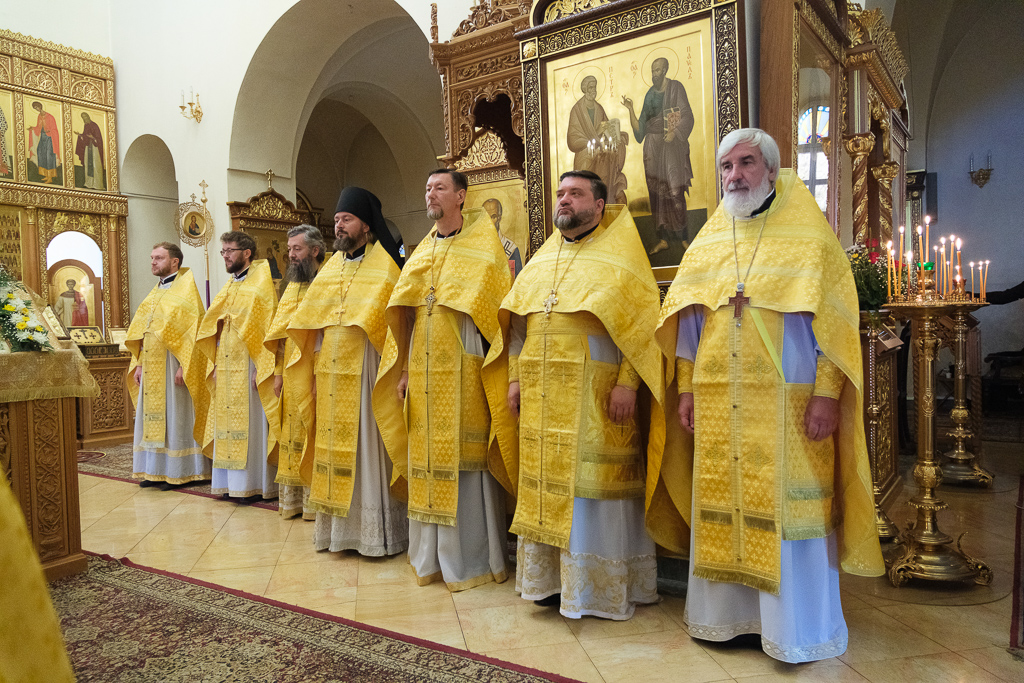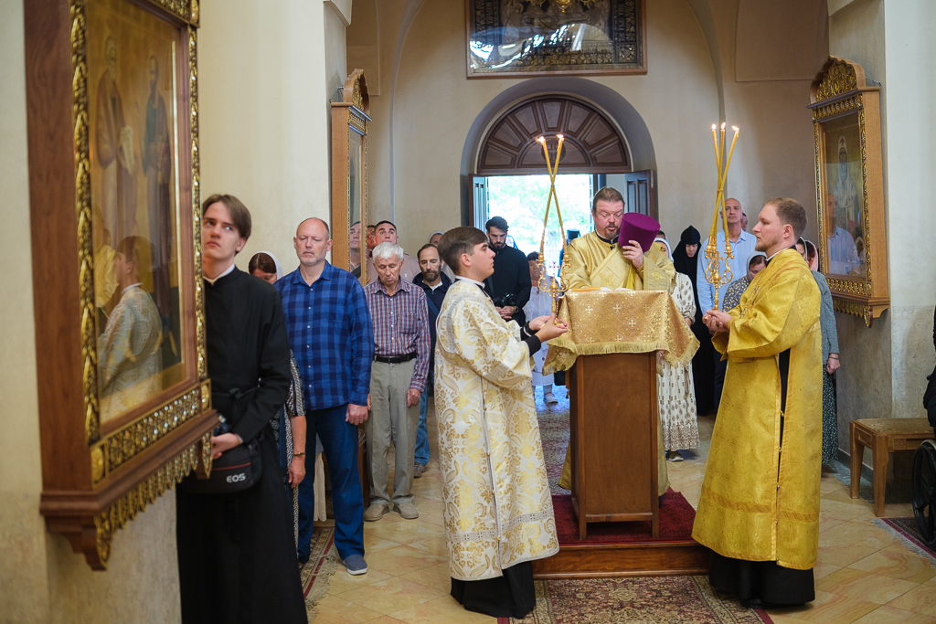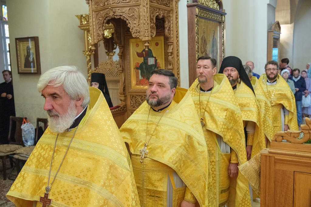 Его Высокопреосвященству сослужили епископ Петергофский Силуан, протоиереи Александр Пашков, Михаил Подолей, Алексий Исаев, Алексий Скляров, Евгений Шогенов, Димитрий Юревич, игумен Фома (Василенко), иереи Глеб Санюк, Павел Ермошкин, Михаил Аксенов, иеромонах Хризостом (Янкин), духовенство обители и другие священнослужители.