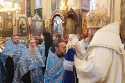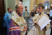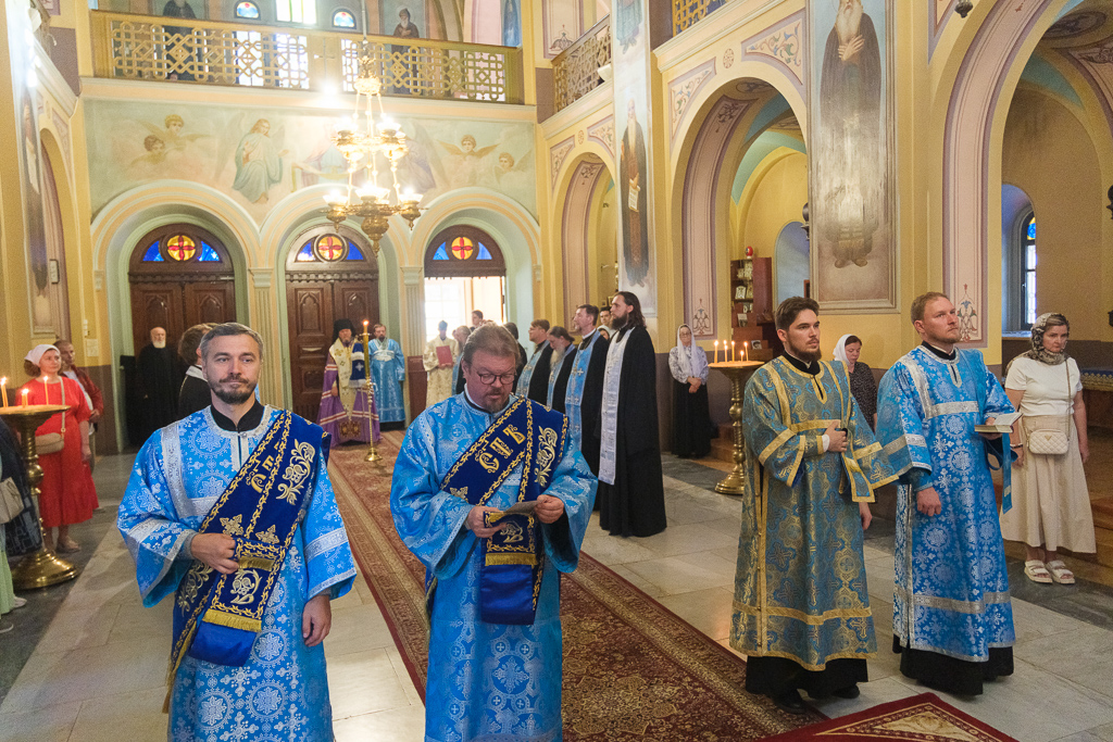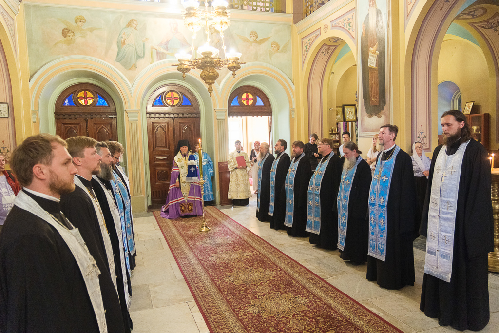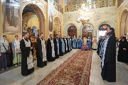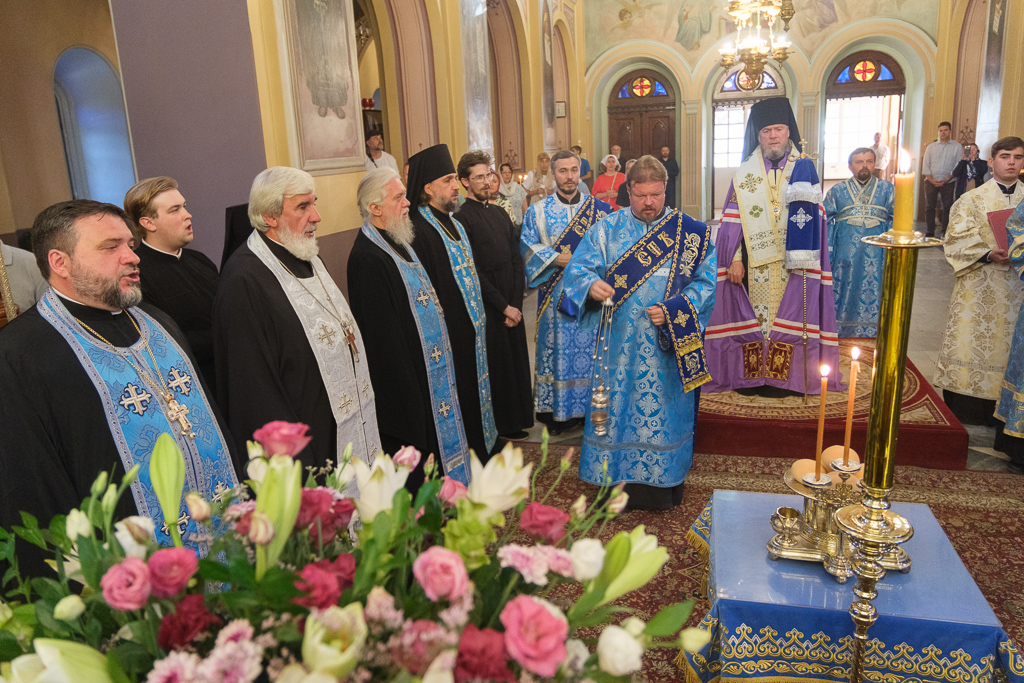 Его Высокопреосвященству сослужили епископы Нарвский и Причудский Лазарь, Петергофский Силуан, начальник Русской духовной миссии архимандрит Вассиан (Змеев), его помощник игумен Никон (Головко), протоиереи Александр Пашков, Михаил Подолей, Алексий Исаев, Алексий Скляров, Евгений Шогенов, Димитрий Юревич, игумены Фома (Василенко), Филарет (Пряшников), иереи Глеб Санюк, Павел Ермошкин, Михаил Аксенов, иеромонах Хризостом (Янкин), духовенство Русской духовной миссии и другие священнослужители.