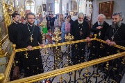 Перед входом в нее епископ Нарвский и Причудский Лазарь прочитал отрывок из Евангелия о воскрешении Лазаря Спасителем (Ин. 11:1-46).