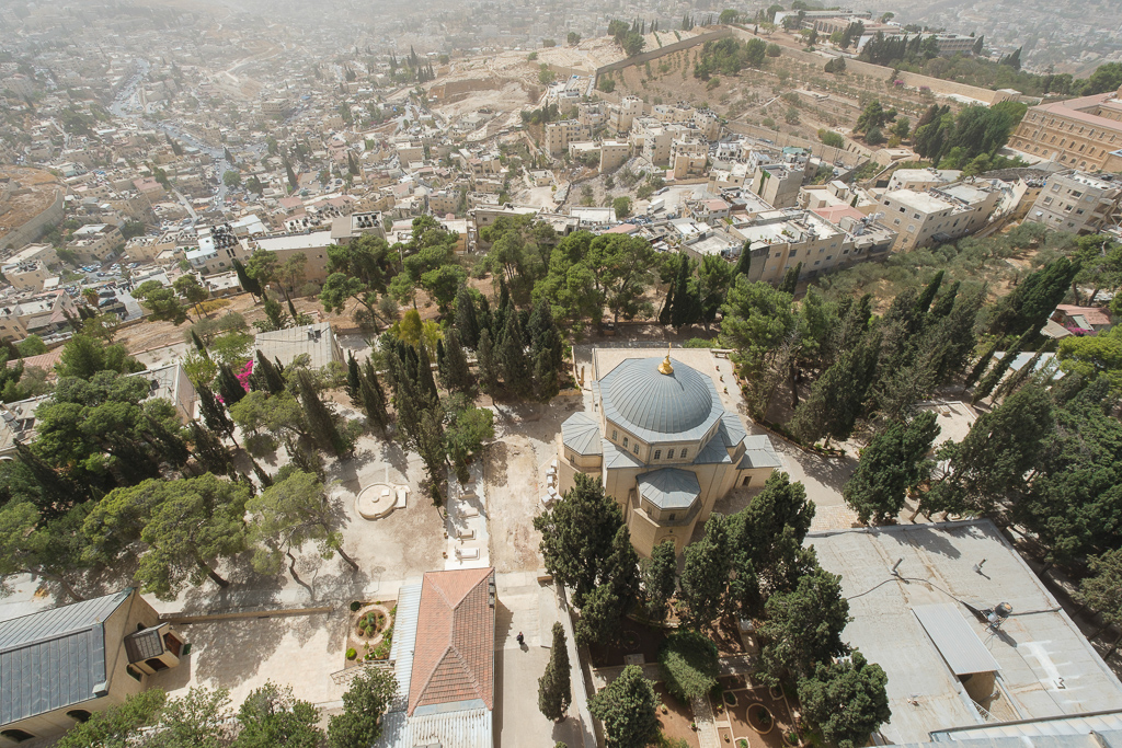 Желающие поднялись на знаменитую 64-метровую колокольню Спасо-Вознесенского монастыря, так называемую "Русскую свечу", и полюбовались видом Иерусалима. Это самая высокая точка города.