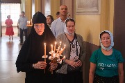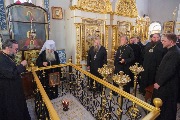 Митрополита Варсонофия и паломников в священном сане приняла настоятельница монастыря игумения Иудифь (Заставская).