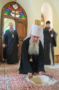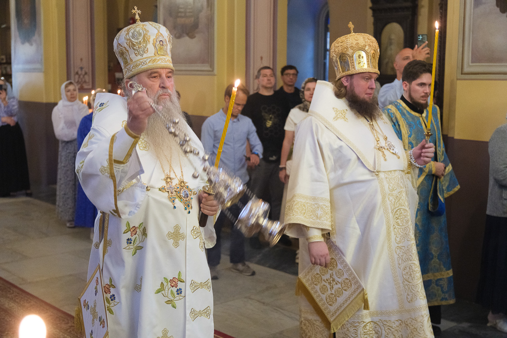 Вечером митрополит Варсонофий совершил Всенощное бдение в Свято-Троицком соборе Русской духовной миссии в Иерусалиме.