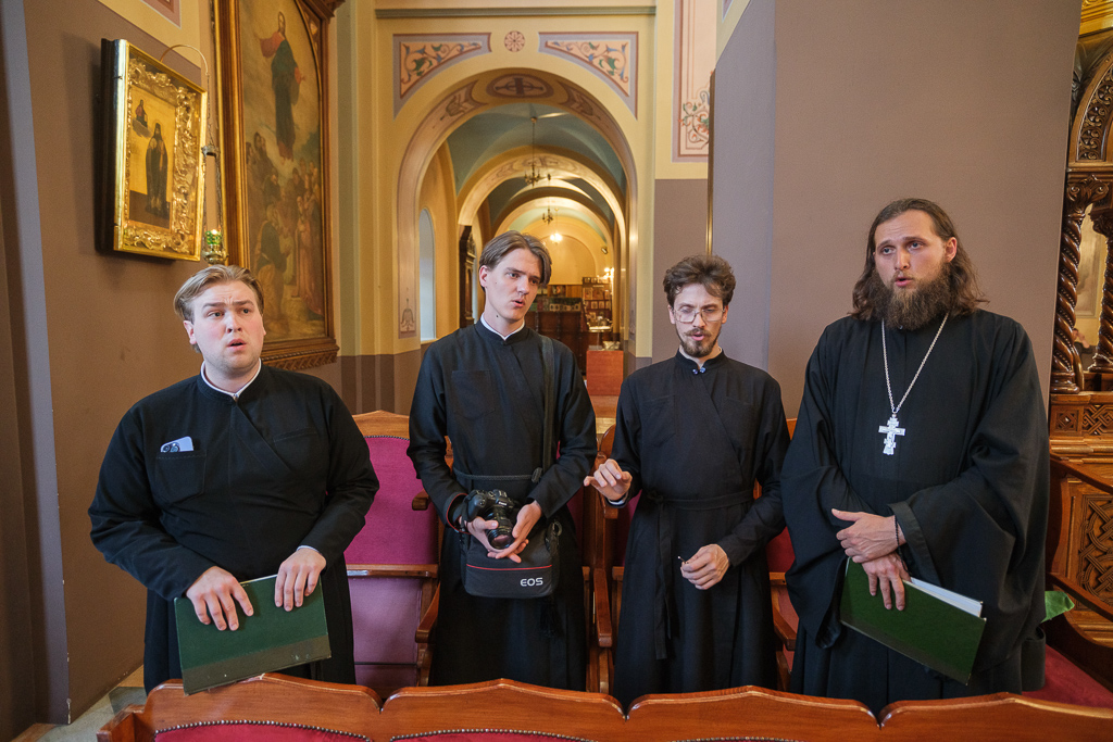 Пел хор собора, отдельные песнопения исполнила группа студентов СПбДА под управлением Петра Белокрылова.