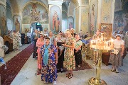 За богослужением молились паломники из Санкт-Петербурга и других городов, приехавшие вместе с владыкой.