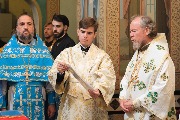 Владыка поблагодарил настоятеля подворья за труды и подарил ему наперсный крест с украшениями.