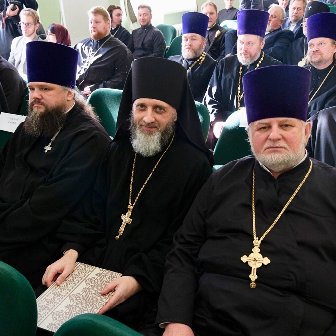 Ректор Ставропольской семинарии протоиерей Павел Самойленко подарил петербургским духовным школам книги, изданные в семинарии. С приветствиями обратились также представитель Учебного комитета, проректор по молодежной и воспитательной деятельности ОЦАД игумен Антоний (Кадышев) и проректор по воспитательной работе Минской духовной академии иеромонах Андрей (Василюк).