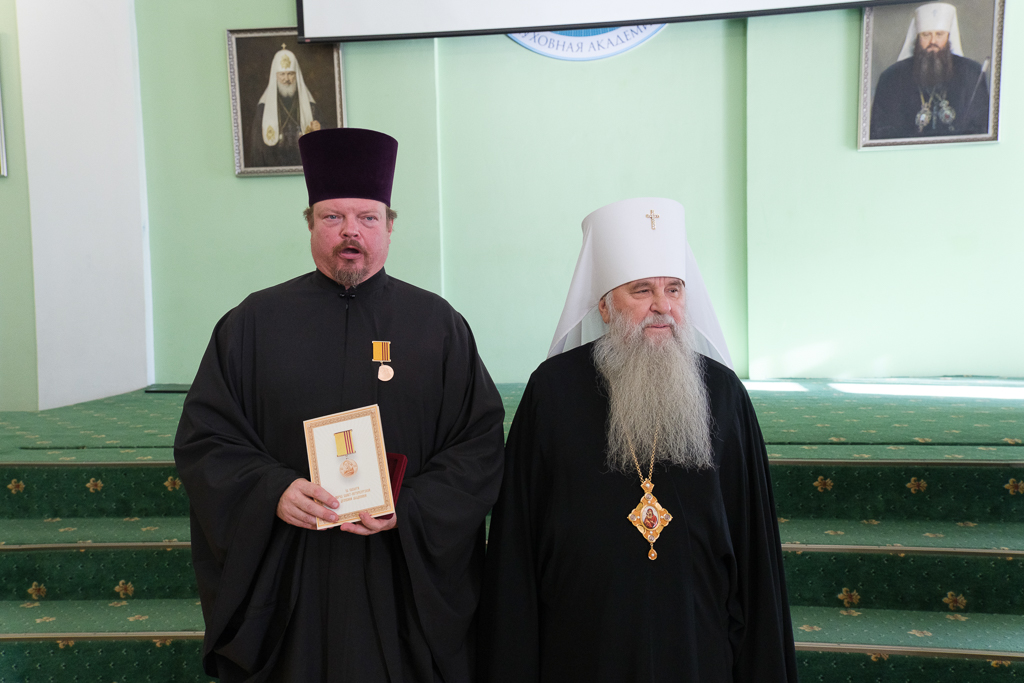 В связи с 55-летием доцент кафедры церковно-практических дисциплин протоиерей Виталий Грищук награжден орденом святителя Макария, митрополита Московского, 3-й степени, академической медалью святого апостола и евангелиста Иоанна Богослова 2-й степени награждены настоятель храма святой великомученицы Екатерины на Васильевском острове протоиерей Иоанн Пашкевич и старший преподаватель факультета церковных искусств иерей Иоанн Никитин, епархиальному протодиакону Андрею Левину и сотруднице академической трапезной Елене Золотовой вручена академическая медаль святого апостола и евангелиста Иоанна Богослова 3-й степени. Старший преподаватель иконописного отделения Алексей Козлов в связи с 45-летием удостоен академической грамоты.