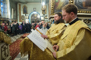 "Мы молимся, чтобы святой Фома укрепил нас в вере, и она была крепкой и непоколебимой, как у протоиерея Михаила Союзова, память которого мы сегодня совершаем. Его мощи находятся в Князь-Владимирском соборе. Он родился в Новгородской губернии в 1869 году. Закончил там семинарию, потом Санкт-Петербургскую духовную академию. Служил под руководством праведного Иоанна Кронштадтского, а в последние годы после революции был настоятелем Князь-Владимирского собора, пользовался авторитетом среди духовенства. Когда начались репрессии по поводу изъятия имущества и ценностей из Церкви, он был вместе с митрополитом Петроградским Вениамином и попал на судилище. Владыку приговорили к расстрелу, а отец Михаил получил три года тюрьмы, где скончался в 1922 году в этот день. Сегодня мы совершаем его память и также просим его молитв, чтобы укрепить в нас веру и верность Господу", - завершил проповедь митрополит Варсонофий.