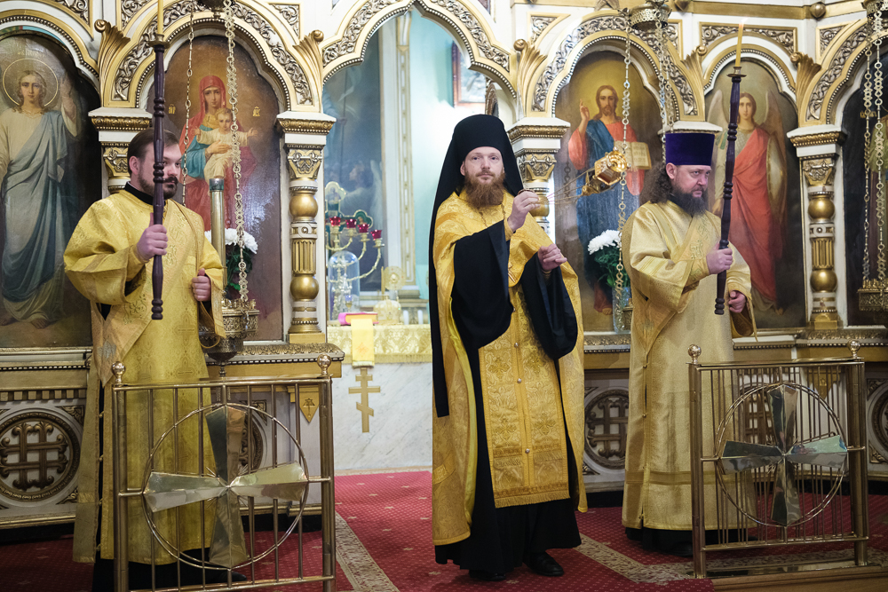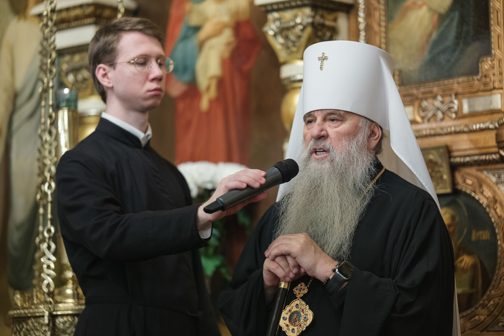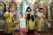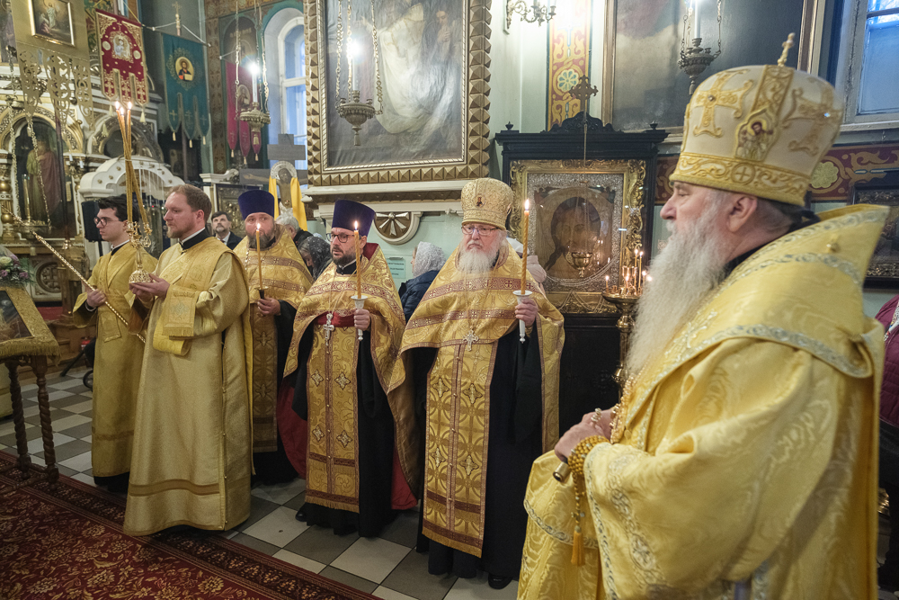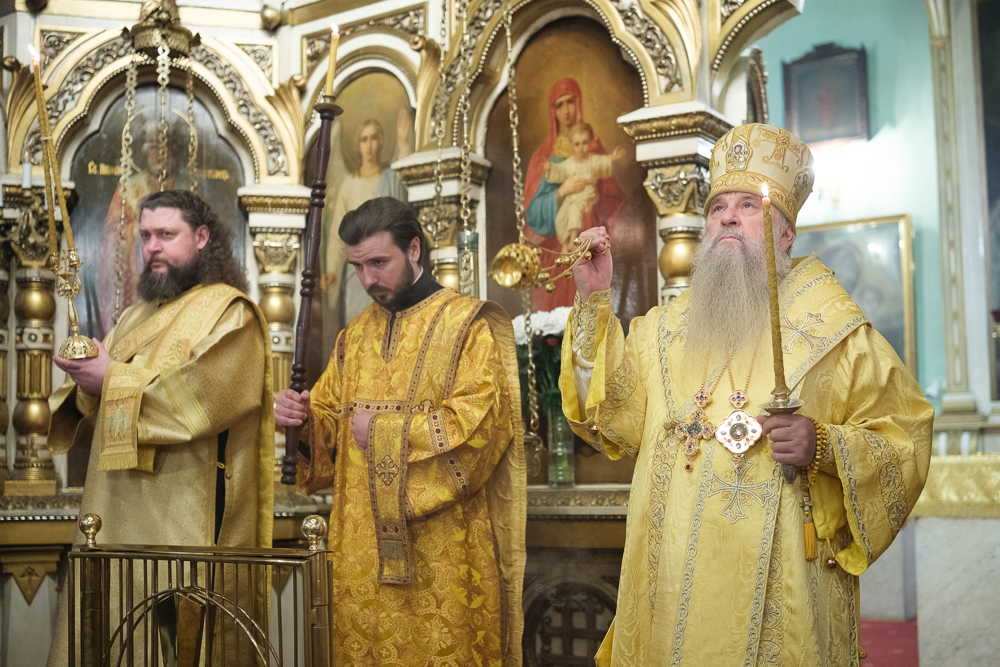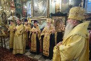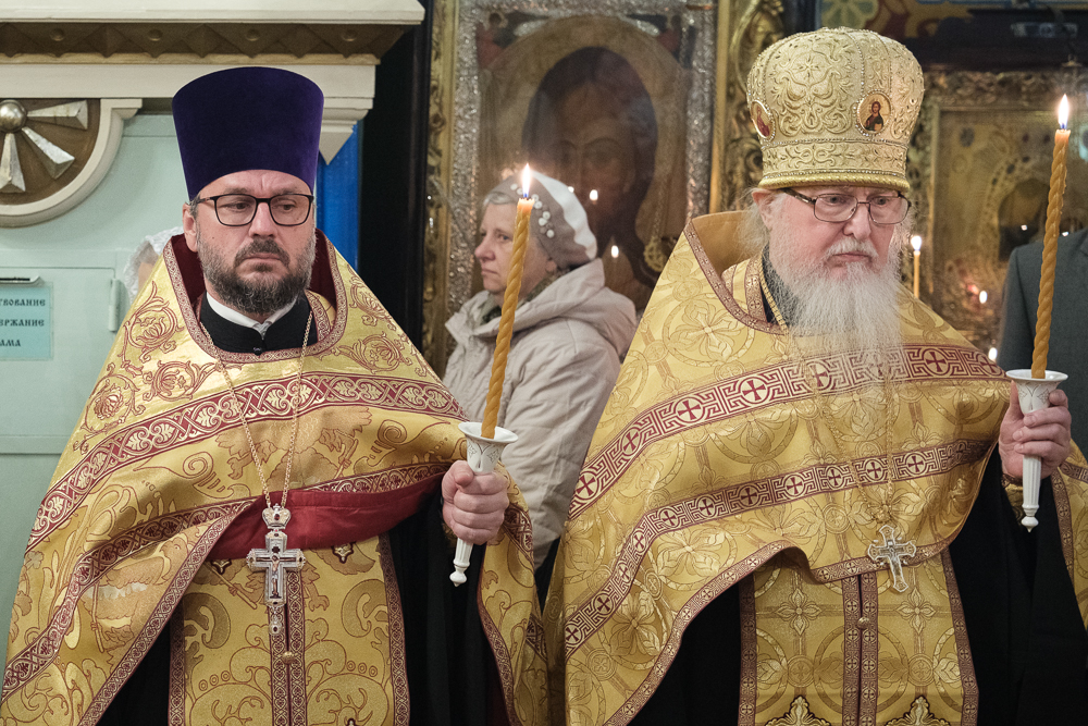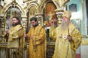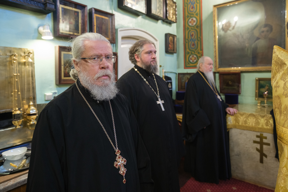 Его Высокопреосвященству сослужили благочинный Фрунзенского округа протоиерей Алексий Исаев, настоятель протоиерей Леонид Степанов с клиром и другие священнослужители.