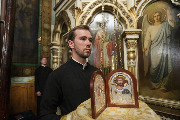 Настоятель поблагодарил митрополита за совместную молитву и подарил ему двустворчатый складень с иконами Спасителя и Божией Матери.