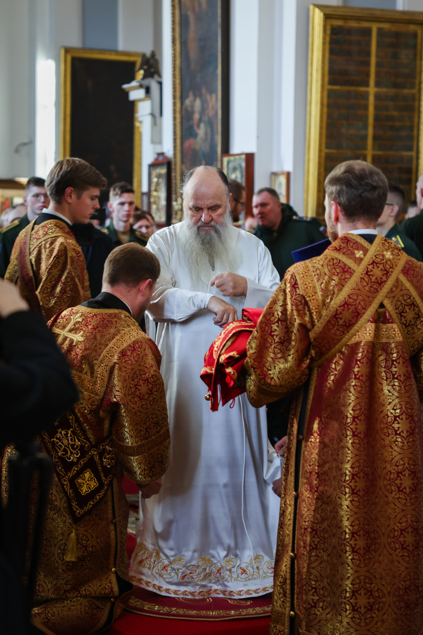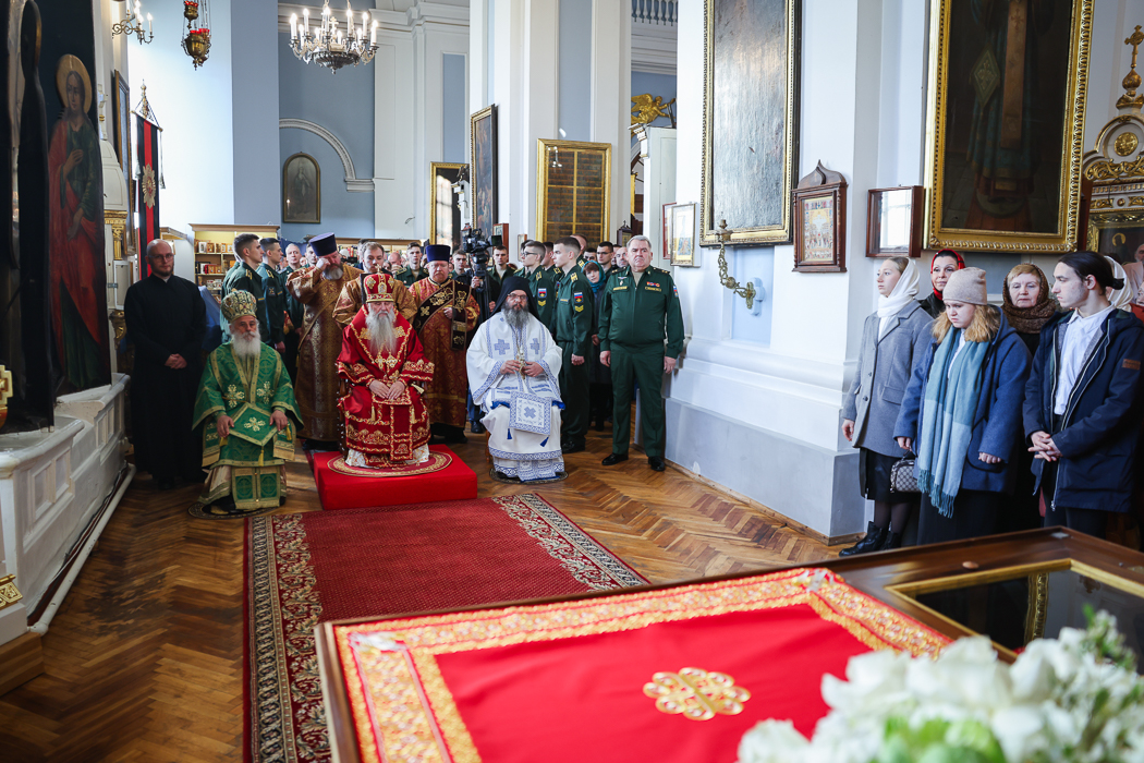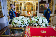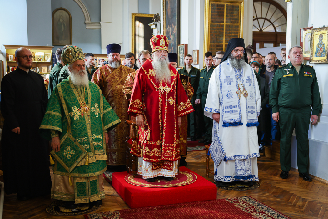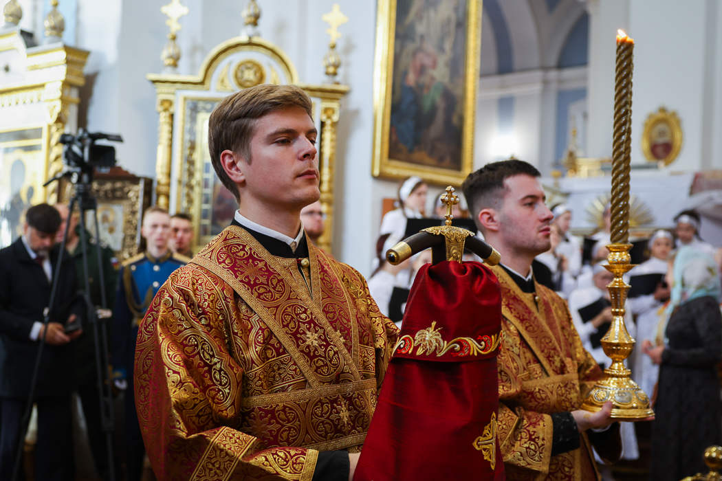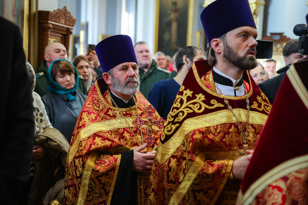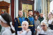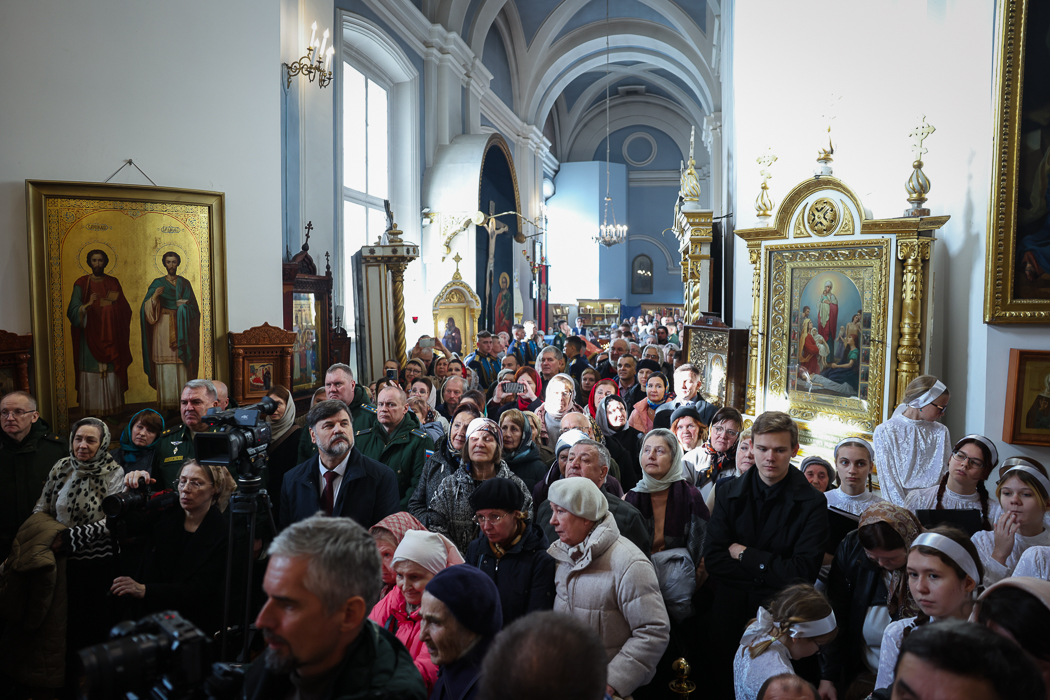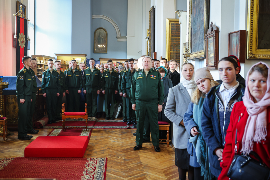 Среди молящихся были преподаватели и курсанты Военно-космической академии имени Александра Можайского, служащие Росгвардии.