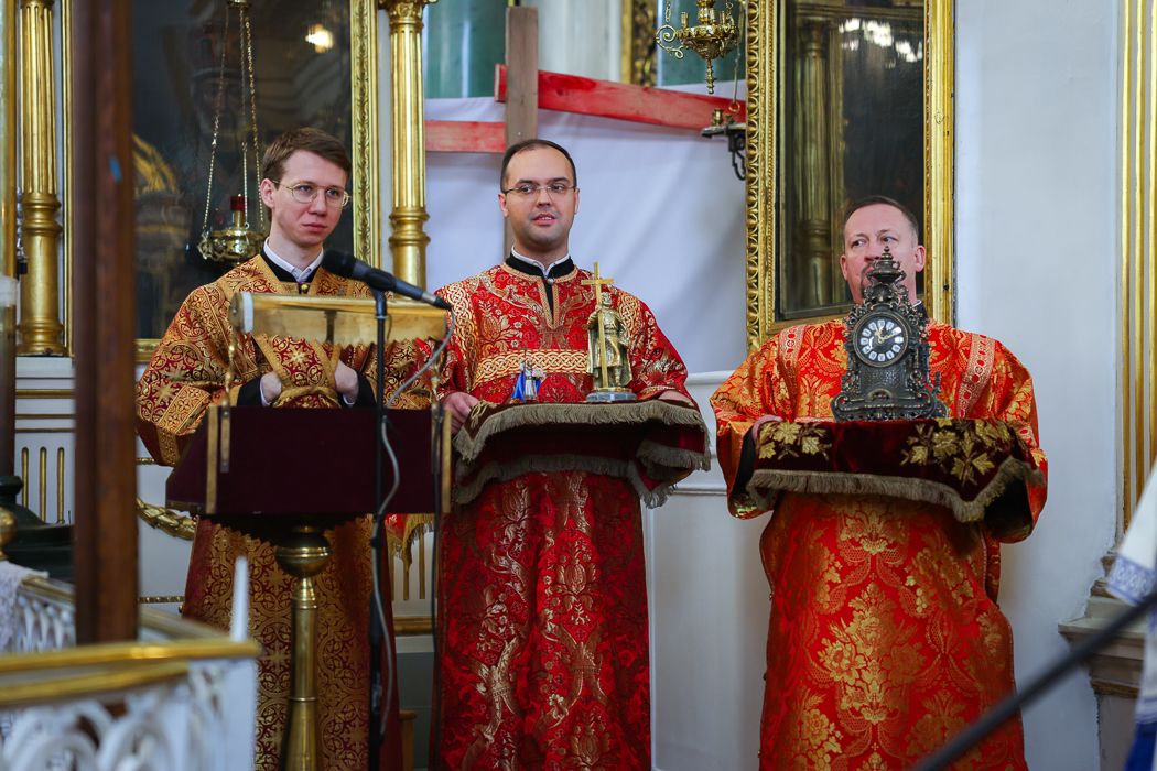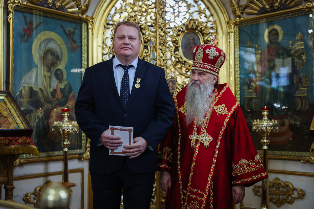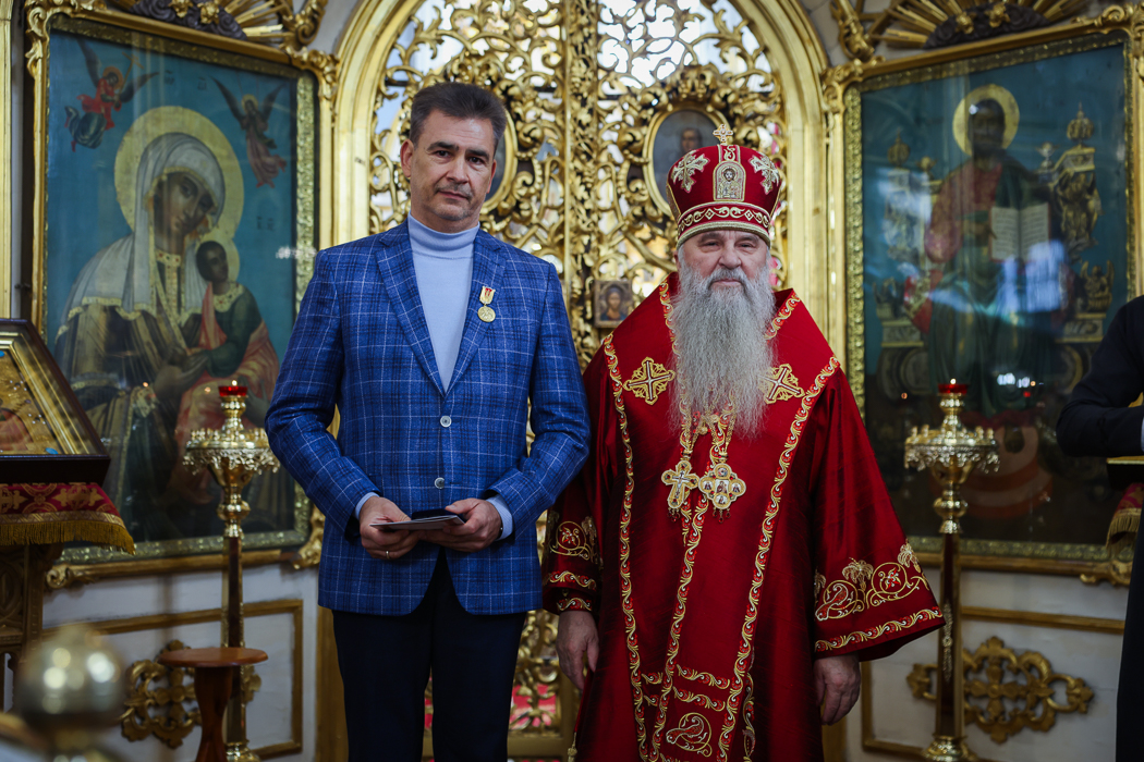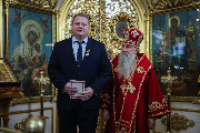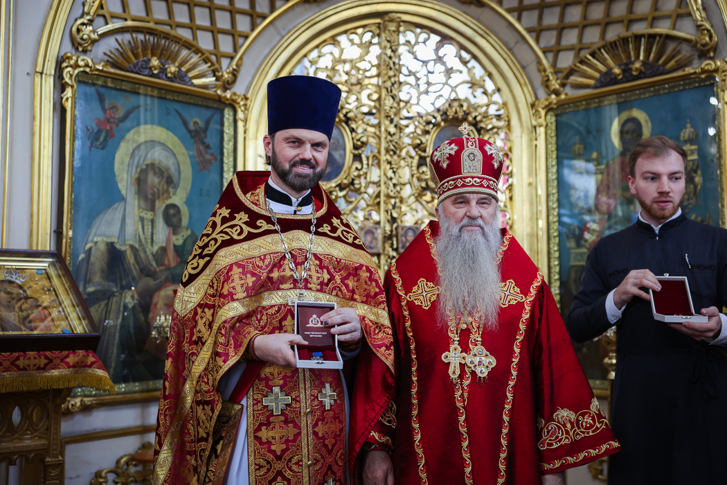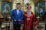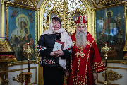 За усердное служение Святой Церкви настоятель иерей Илия Макаров был награжден знаком "За добродетель" II степени. За заслуги перед митрополией начальник ВКА имени Можайского генерал-лейтенант Анатолий Нестечук и депутат Заксобрания Анастасия Мельникова удостоены знаков священномученика Вениамина, митрополита Петроградского. Председатель городского комитета по печати и взаимодействию со СМИ Владимир Рябовол и директор Городского центра рекламы и праздничного оформления Андрей Чистяков награждены медалями апостола Петра.