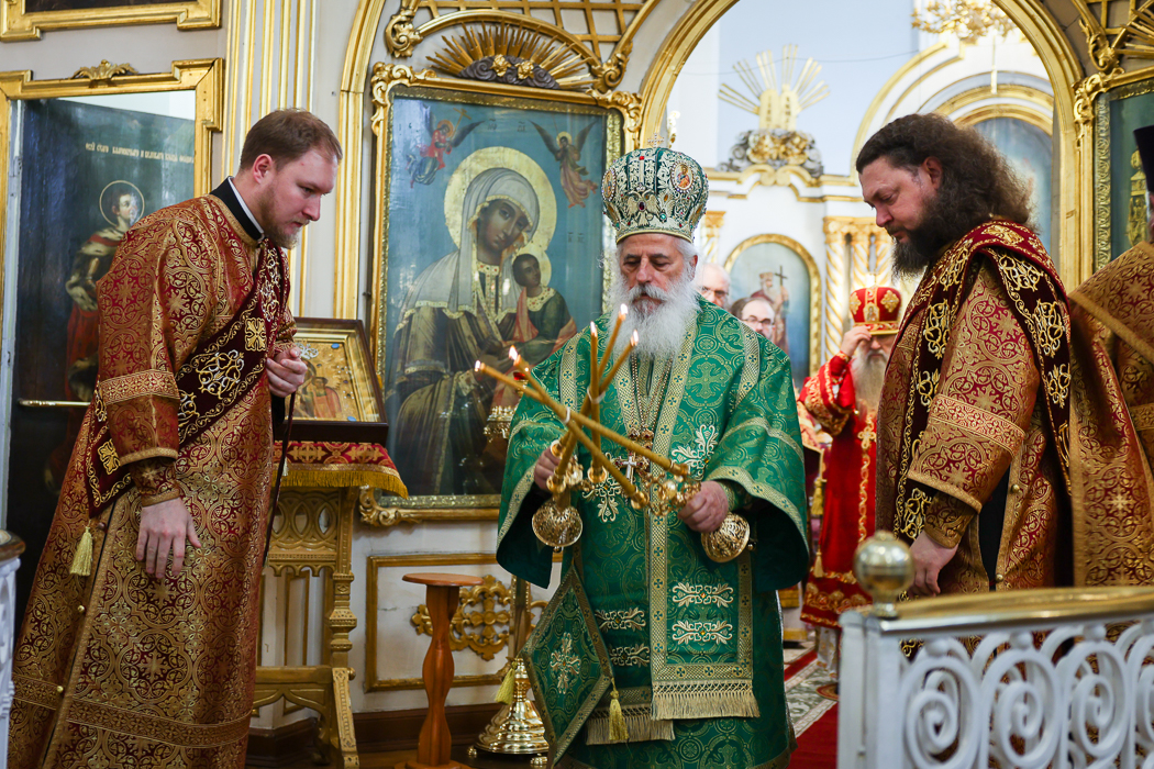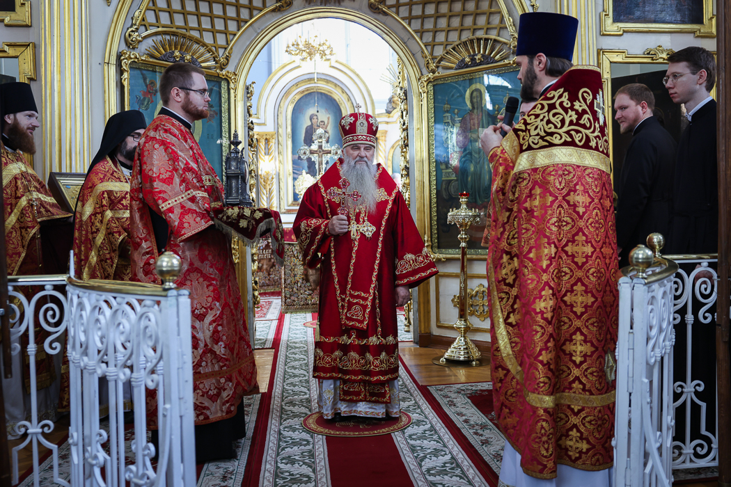 Митрополит поздравил верующих с воскресным днем и памятью кончины настоятеля и небесного покровителя храма, священноисповедника Михаила Союзова.