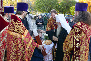 "Бояться нужно греха. Он - главная опасность в нашей жизни. Но и против греха есть средство - покаяние, исповедь, причащение. Если будем так жить, то у нас никогда не будет горя, будет всегда радость в душе. Желаю вам в этот день, когда мы прославляем нашего святого, бывшего настоятеля отца Михаила, духовной радости, крепкого здоровья и помощи Божией в трудах и заботах о вечном спасении", - завершил проповедь митрополит Варсонофий.