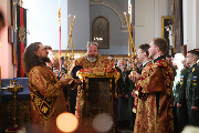 "Мы страшимся горя, но у Бога горя нет, у Него горе всегда превращается в радость, - сказал владыка в проповеди. - Сегодня мы слушали отрывок из Евангелия, где рассказывалось о горе вдовицы, у которой умер единственный сын. Но горе, когда нет Бога. А когда Он идет навстречу, всякое горе превращается в радость. Господь велел этой женщине не плакать, а юноше - встать. И тот встал с постели - горе превратилось в радость. Когда отца Михаила осудили на три года тюрьмы после судилища в Петрограде, казалось, что это большое горе для прихожан Князь-Владимирского собора, для всех его почитателей. Но прошло время, и оно перешло в радость, потому что отец Михаил причислен к лику святых исповедников Церкви Русской".