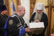 Казаки из числа прихожан подарили владыке сувенирный пряник.