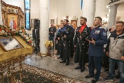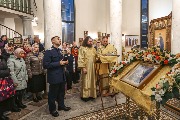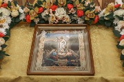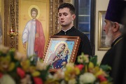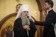 "Ее поместили сначала в Новодевичьем монастыре, потом для нее на Красной площади была построена Иверская часовня. Сегодня она хранится в Новодевичьем монастыре, а недавно восстановили Иверскую часовню, и туда еще один список принесли из обители. Она больше почитается в Москве и в восточной части России. Вот у вас такой иконы нет, поэтому я вам ее привез, чтобы вы совершали перед ней службу. Мы должны всегда молиться Царице Небесной. Она не только тогда была с народом Божиим, но и сегодня рядом с нами, благодать изливается через Ее иконы. Нужно каждое утро и вечером вспоминать Ее и читать молитву "Богородице Дево, радуйся". Этим мы показываем, что любим Ее как дети. Надо к Ней обращаться во всех нуждах и печалях, а любви Божией Матери хватит на всех, и Она особенно любит исполняющих заповеди Ее Сына. Это главное - исполнять заповеди Божии, и так мы будем детьми Божией Матери", - завершил проповедь митрополит Варсонофий.