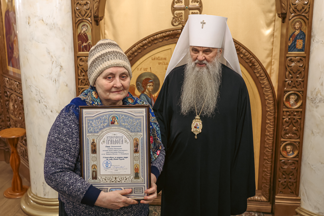Прихожанка Алевтина Двенянинова была награждена архиерейской грамотой.