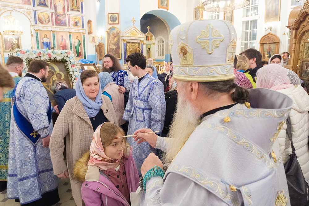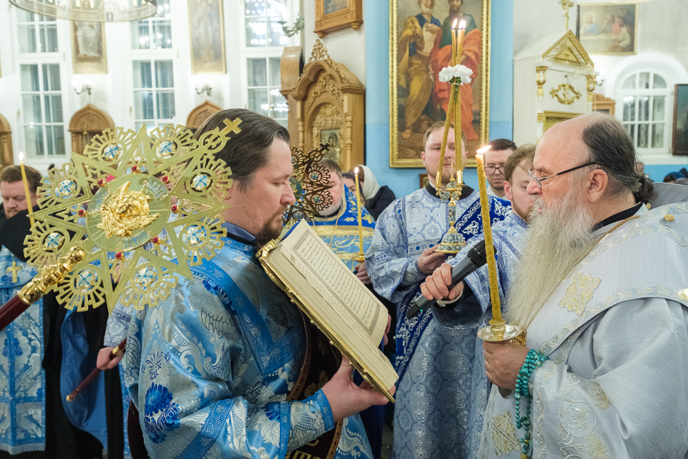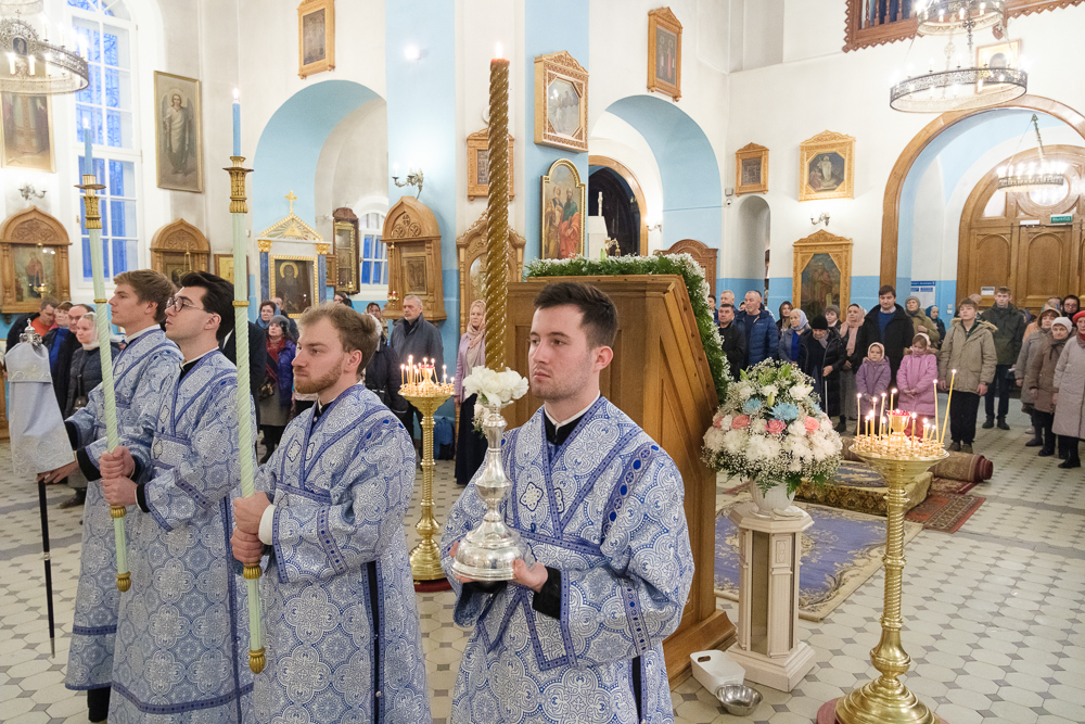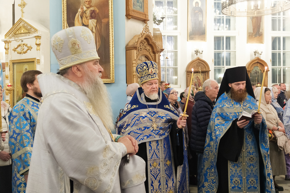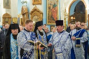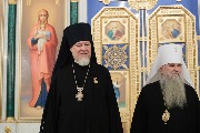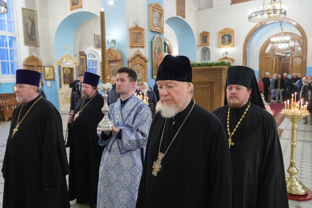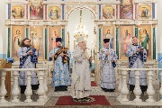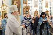 Его Высокопреосвященству сослужили секретарь епархиального управления протоиерей Сергий Куксевич, настоятель архимандрит Викентий (Кузьмин) с клиром и другие священнослужители.