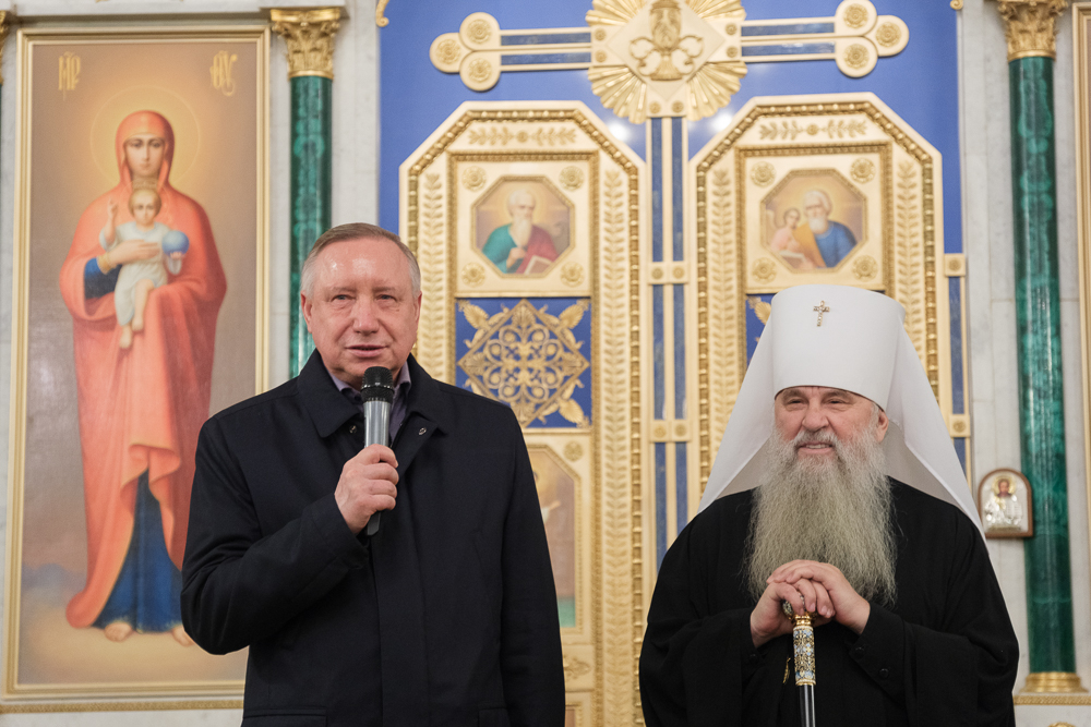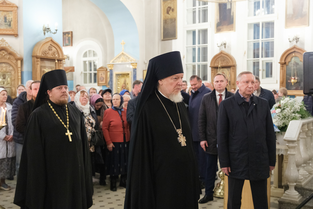 Александр Беглов поздравил верующих с праздником, отметив, что прихожане собрались здесь, чтобы вместе помолиться за Отечество.