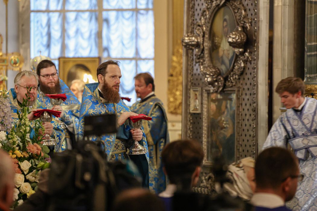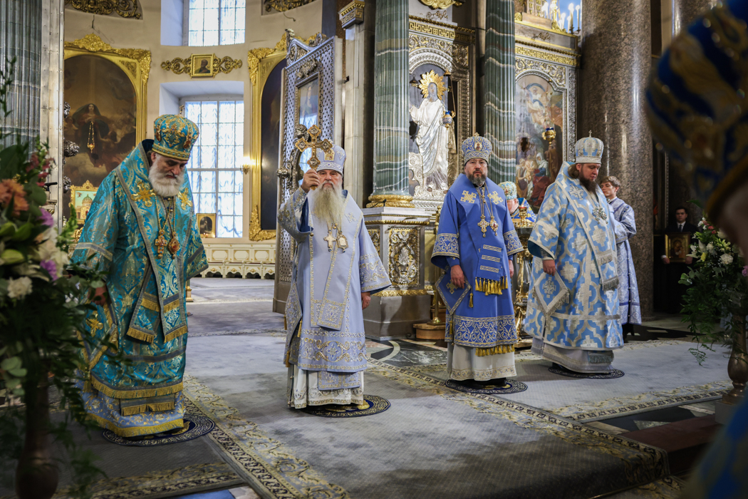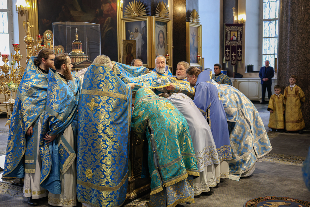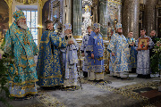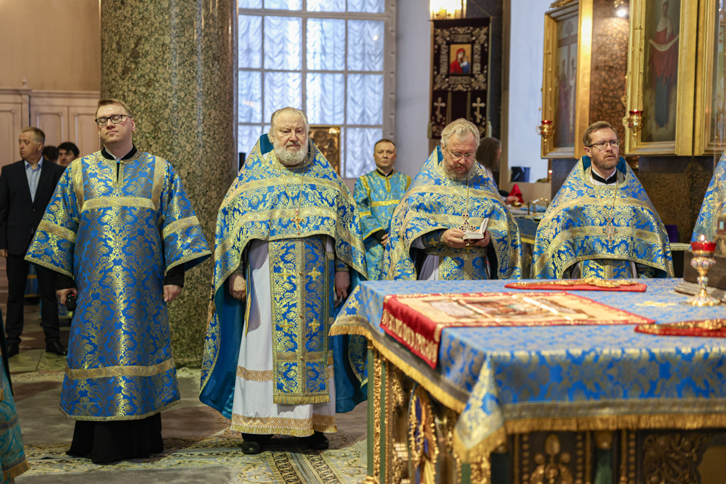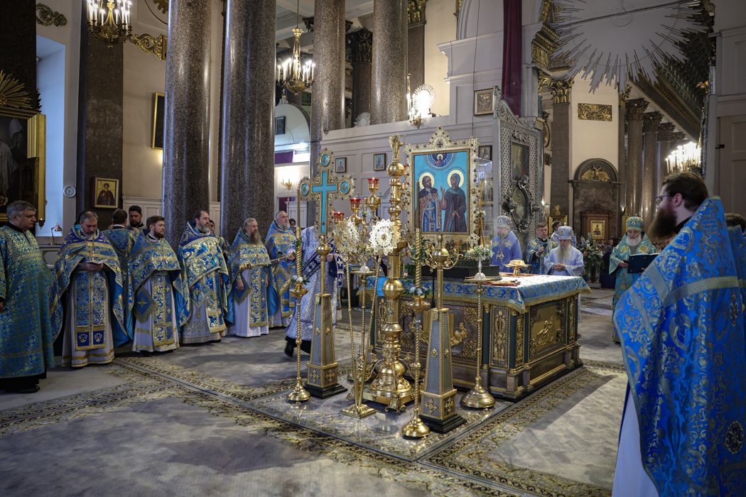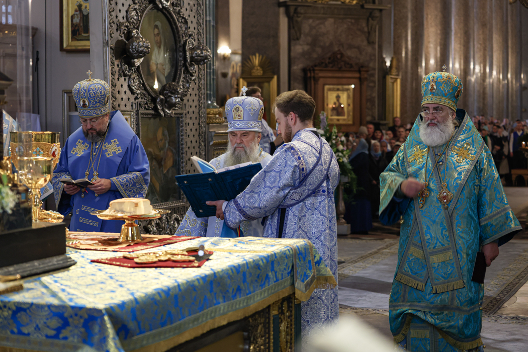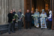 Его Высокопреосвященству сослужили епископы Кронштадтский Вениамин, Тихвинский и Лодейнопольский Мстислав, Петергофский Силуан, секретарь епархиального управления протоиерей Сергий Куксевич, протоиерей Николай Преображенский, ключарь собора протоиерей Андрей Герасимов, председатель приходского совета протоиерей Александр Пашков, архимандрит Александр (Арва), клир собора и другие священнослужители.