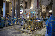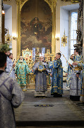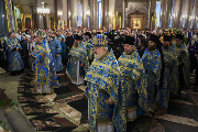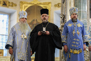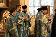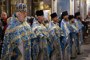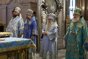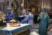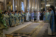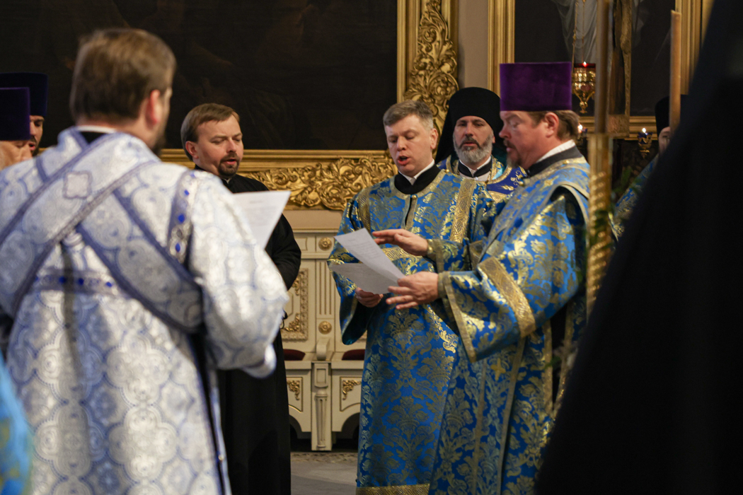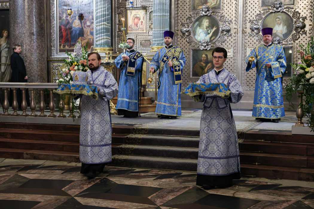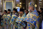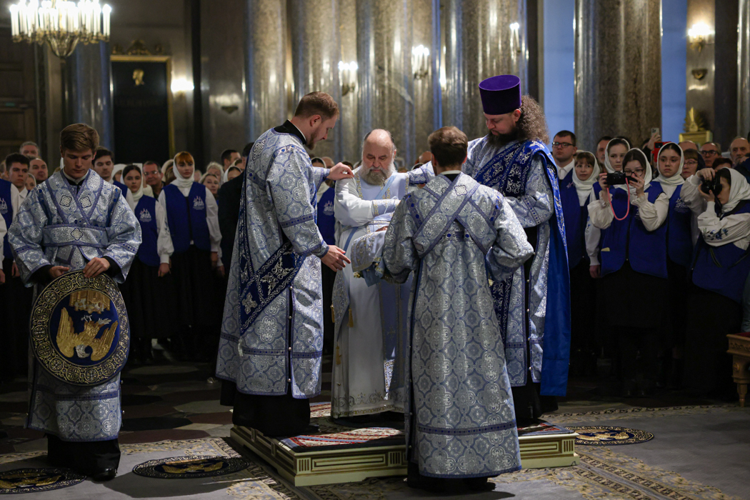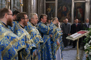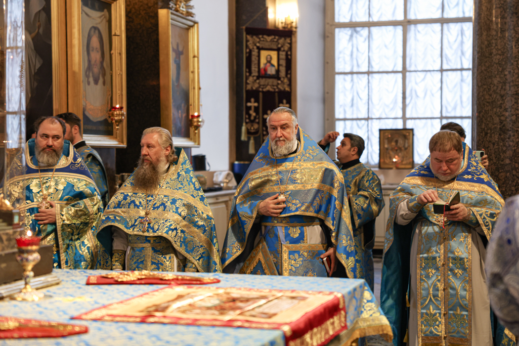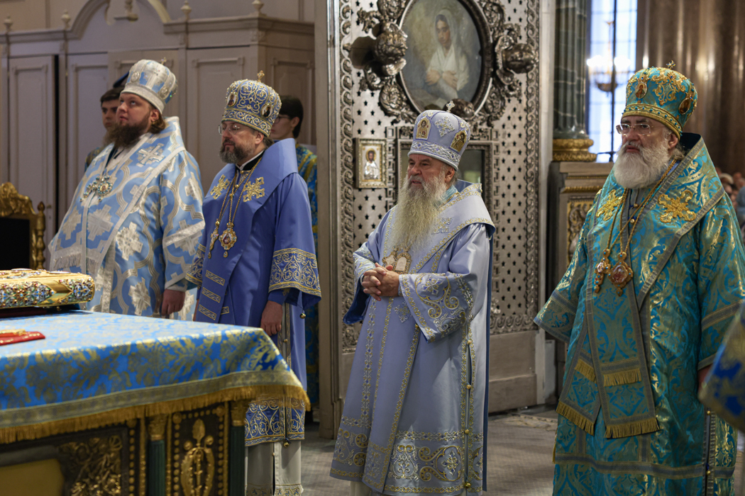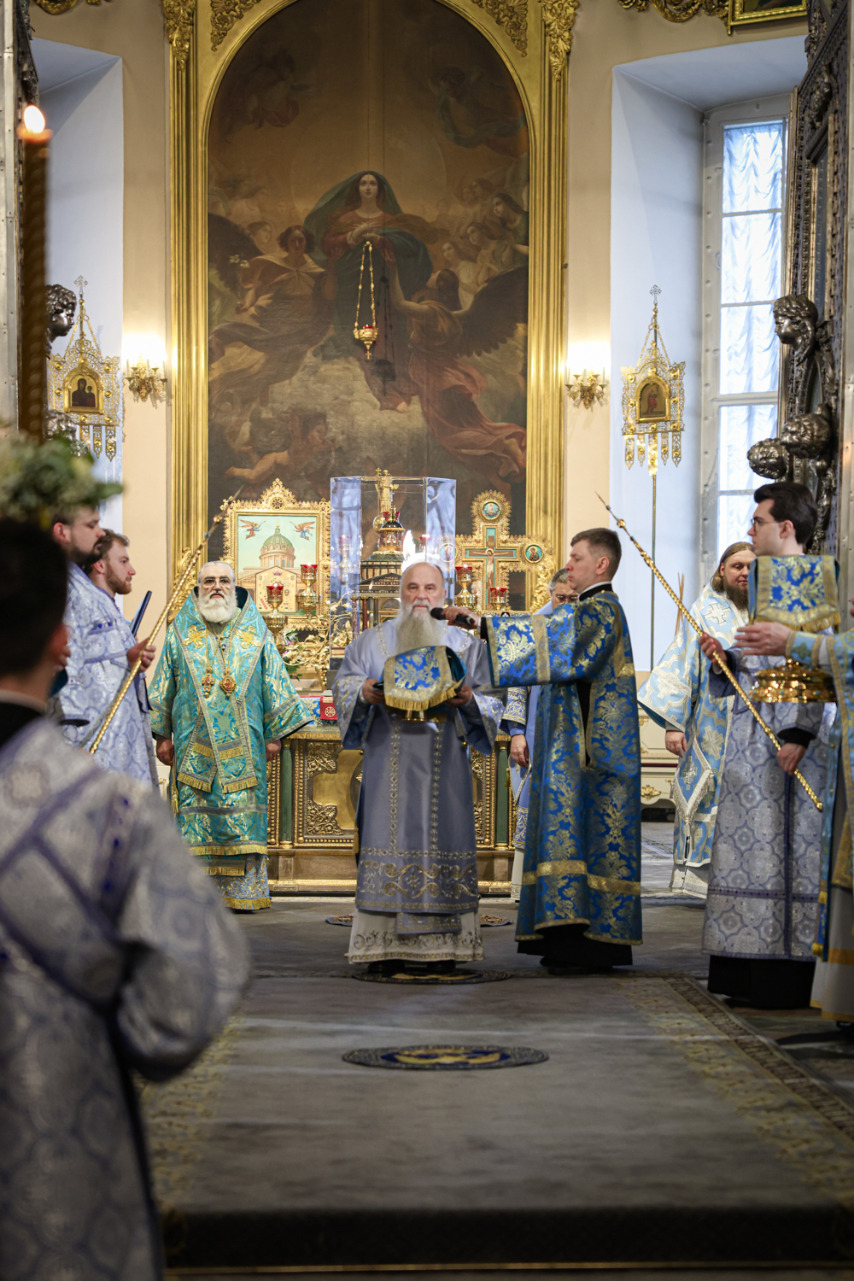 Его Высокопреосвященству сослужили епископы Кронштадтский Вениамин, Тихвинский и Лодейнопольский Мстислав, Петергофский Силуан, секретарь епархиального управления протоиерей Сергий Куксевич, протоиерей Николай Преображенский, ключарь собора протоиерей Андрей Герасимов, председатель приходского совета протоиерей Александр Пашков, архимандрит Александр (Арва), клир собора и другие священнослужители.