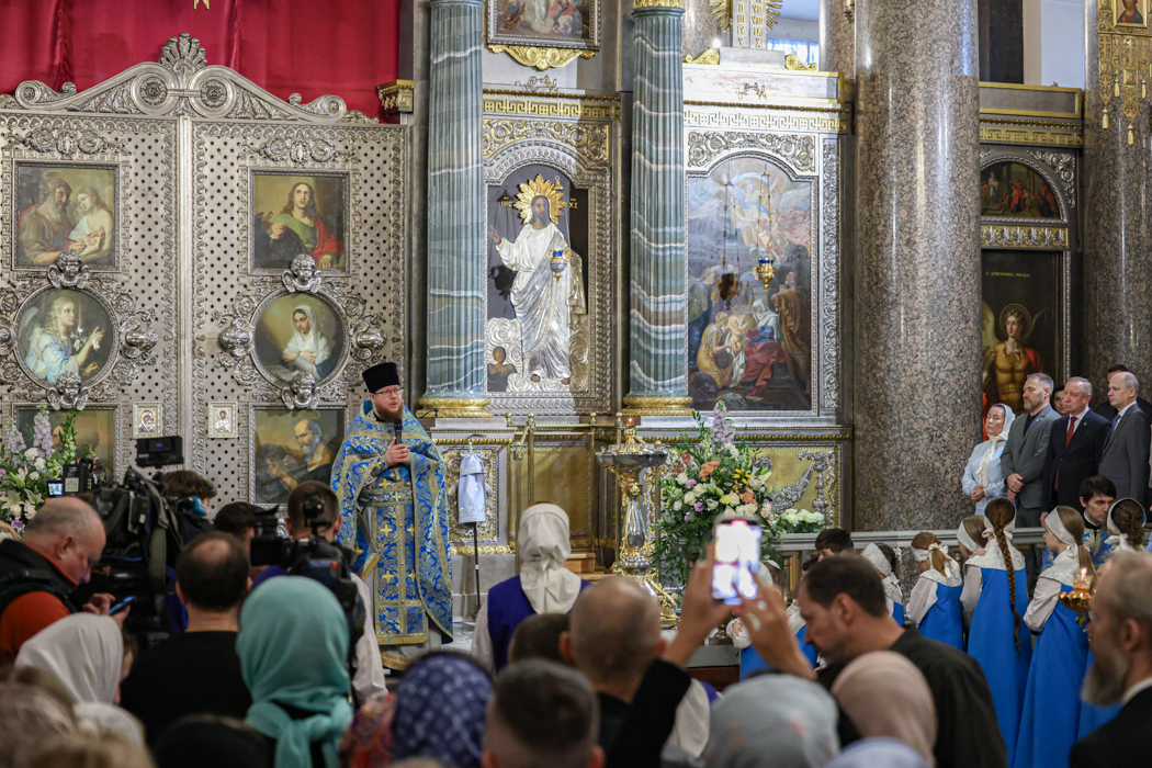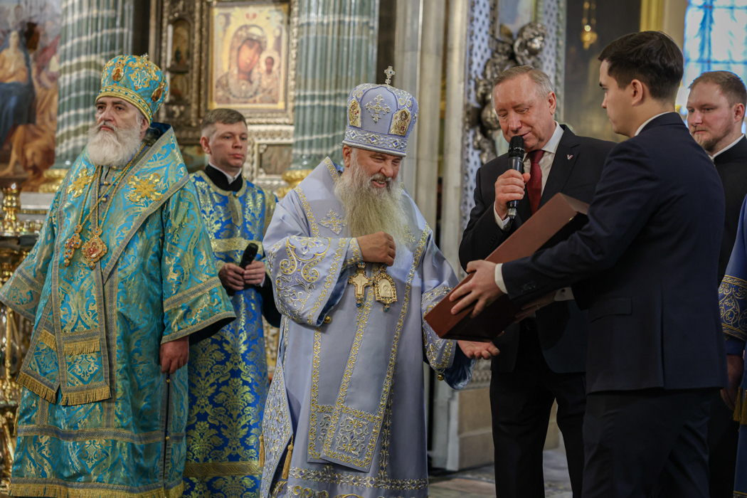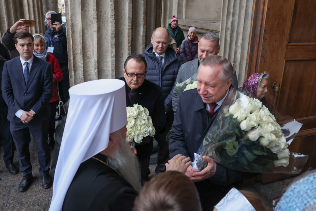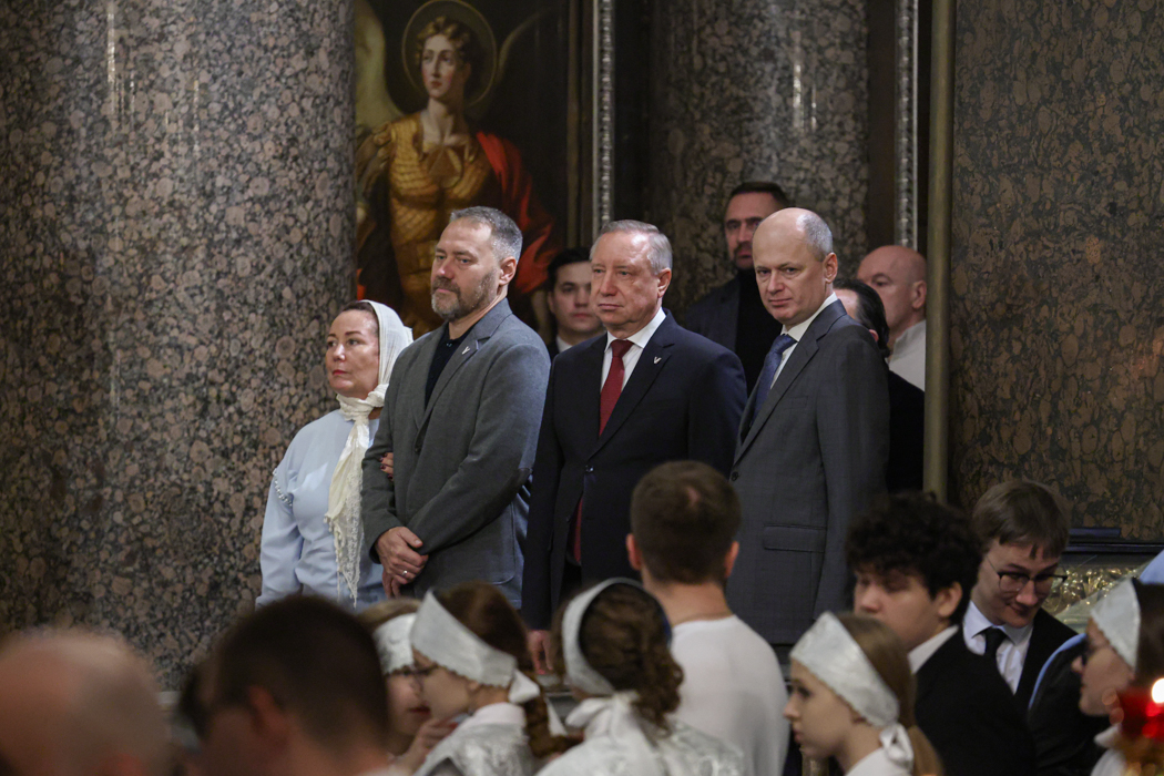Среди молящихся были губернатор Александр Беглов, председатель Заксобрания Александр Бельский, глава администрации Фрунзенского района Константин Серов, главврач детской больницы № 2 Автандил Микава.