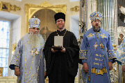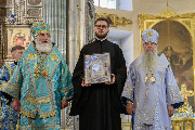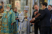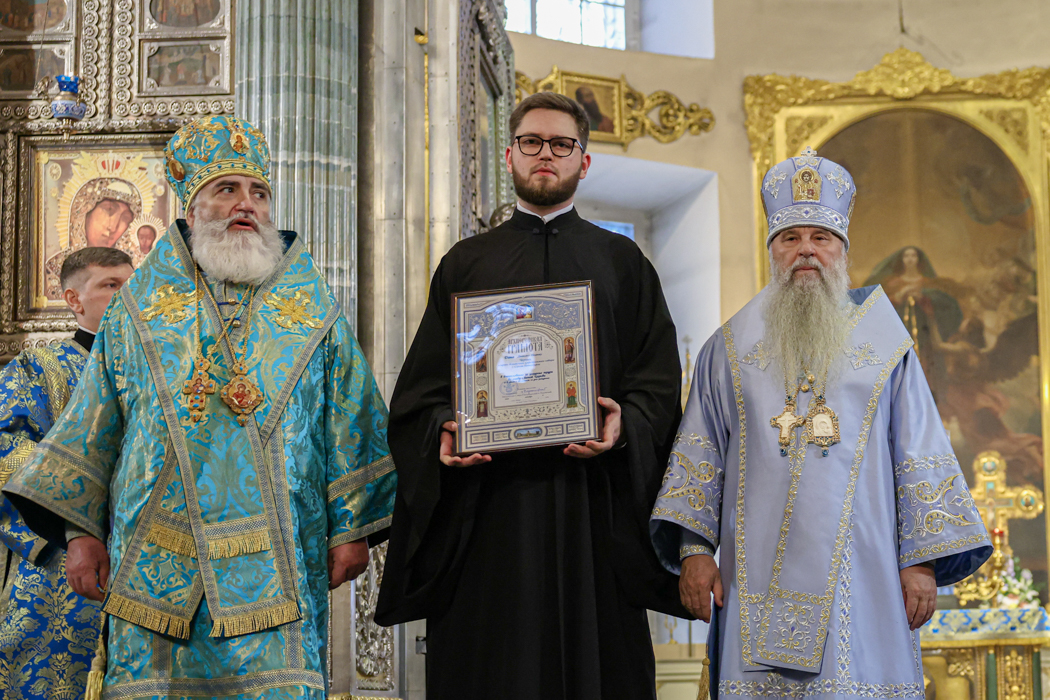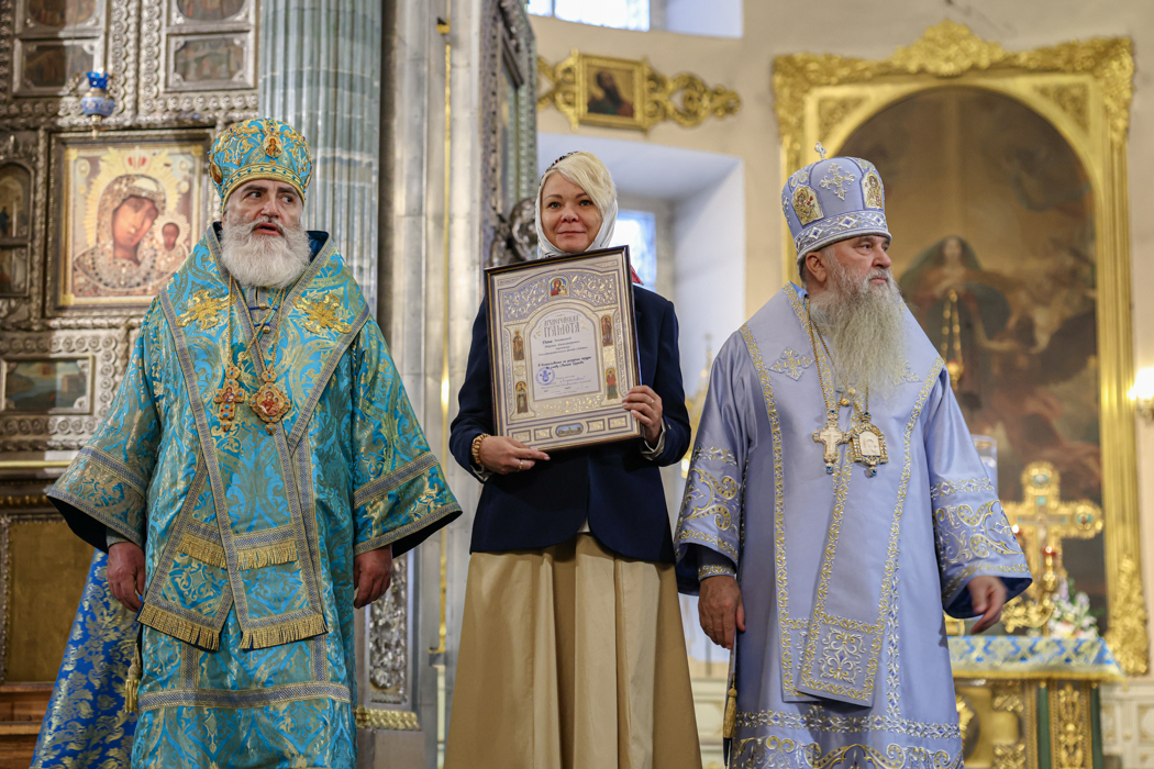 В связи с юбилейными датами были награждены: протоиерей Константин Головатский - орденом святого Александра Невского третьей степени, протоиерей Сергий Кудряшов - медалью апостола Петра. Грамот митрополита удостоены диакон Иоанн Черных, сотрудники прихода Дмитрий Миньков и Марина Зиновьева.