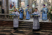 "Когда будет на нашей земле связь с Богом, с Небом, когда мы будем призывать в молитвах Господа и Богородицу, Бог будет покрывать нас, и Царица Небесная будет заступаться за нас. Сегодня, когда на Россию ополчилось столько западных стран, а мы защищаемся, у нас все получится, поскольку мы с Богом, у нас президент православный, православные губернаторы, мы стоим на правильном пути. Мы должны посещать храм Божий, исповедоваться, причащаться, молиться, тогда заступление Небесное будет над народом. Поздравляю вас с праздником, желаю вам хорошего настроения, радости. Надо быть едиными в семьях, на работе, в городе - где единение, там и спасение", - завершил проповедь митрополит Варсонофий.