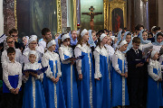 Пели хор собора под управлением Светланы Румянцевой и хор детской воскресной школы под управлением Марии Красноцветовой.