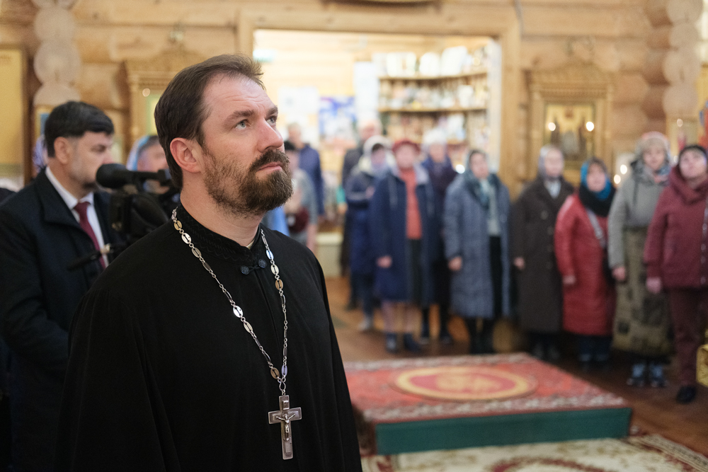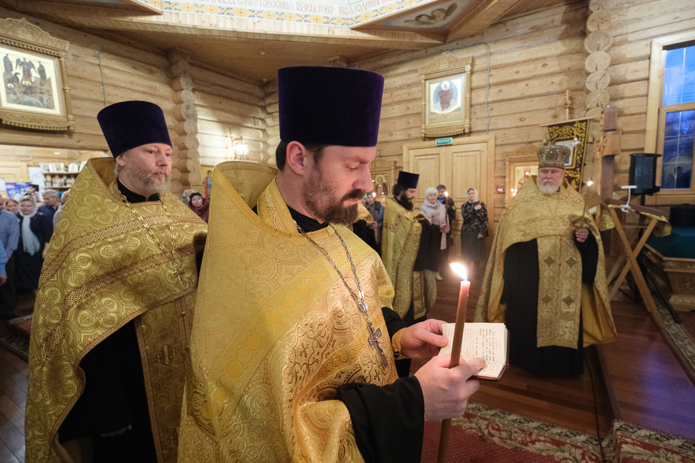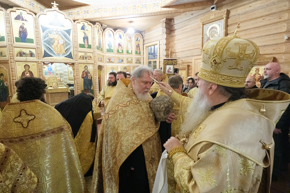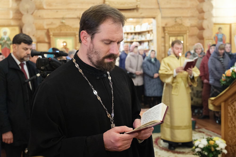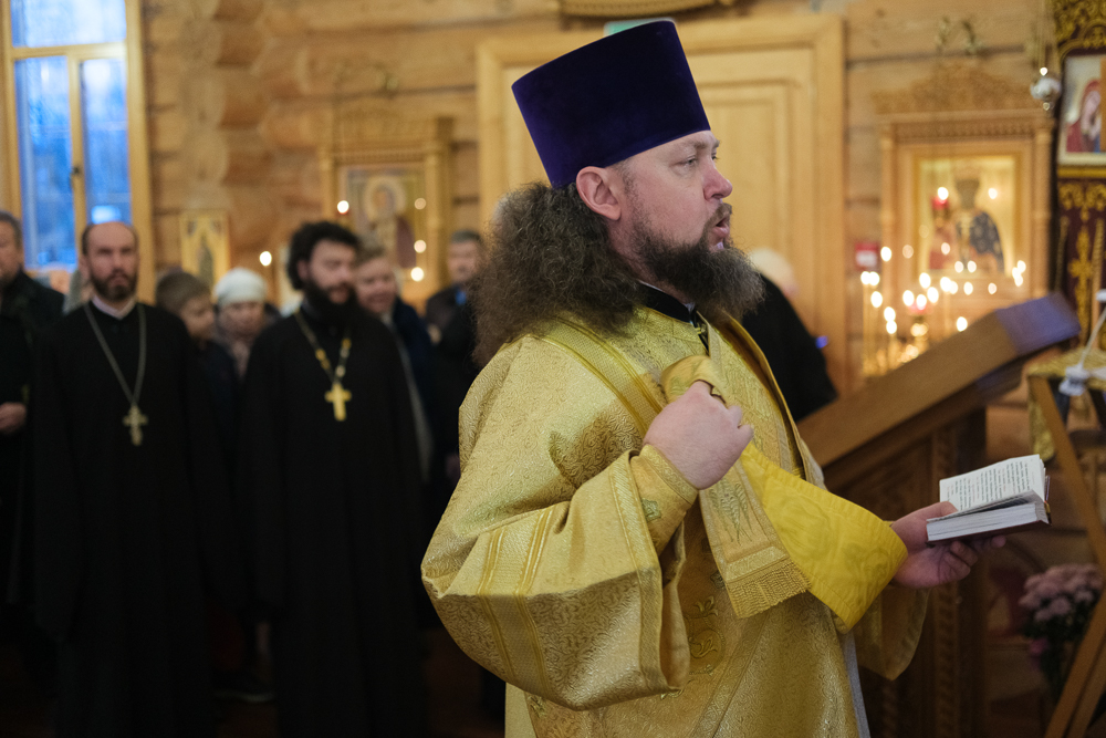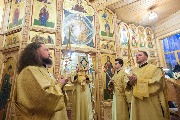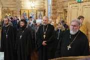 Его Высокопреосвященству сослужили секретарь епархиального управления протоиерей Сергий Куксевич, благочинный Пушкинского округа протоиерей Никита Зверев, настоятель протоиерей Сергий Калинин с клиром, протоиерей Геннадий Зверев и другие священнослужители.