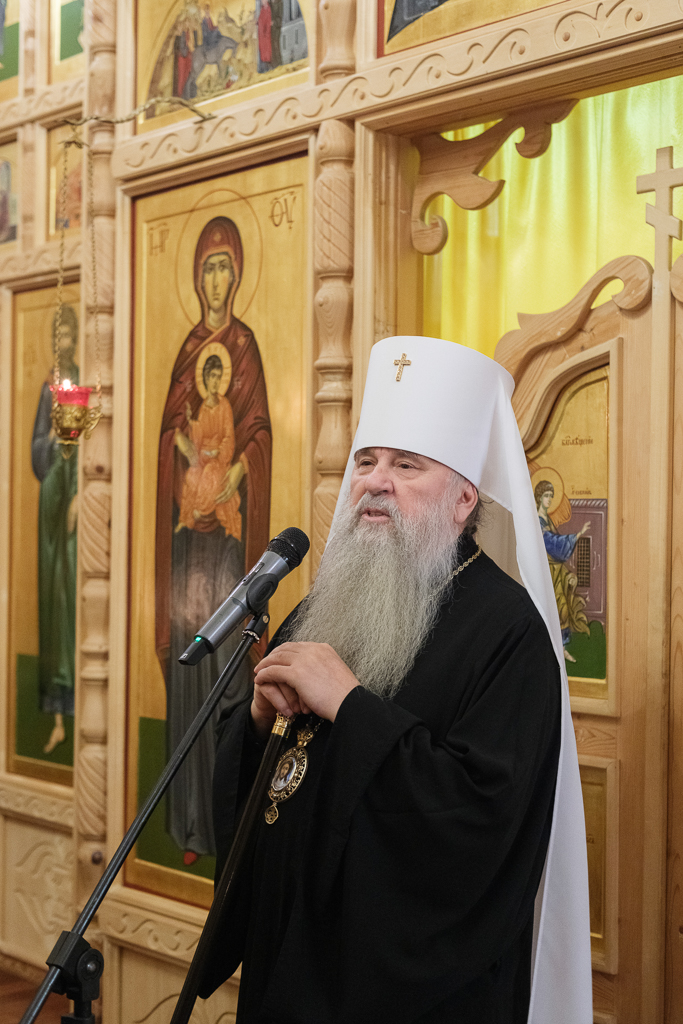 "Что делать, чтобы спастись? Этот вопрос мы должны ставить всегда, - сказал владыка в проповеди. - Когда мы встречаемся друг с другом, должны спрашивать не "как поживаешь, как здоровье, как дела?", а "как спасаешься?" Это самый главный вопрос. Но мы его почему-то никогда не задаем. Если спросить человека, как спастись, верующий должен сказать, что надо читать Евангелие, там все написано. Господь дал ответ на этот вопрос. Он говорил: исполняйте заповеди Божии. Это главное и первое условие. Заповеди мы знаем, Бог передал их человечеству через пророка Моисея. А когда Он сам пришел на землю, дал еще заповеди блаженств. Мы их поем за Божественной литургией: "Блаженны нищие духом, ибо их есть Царство Небесное..." (Мф. 5:3). Если человек смиренный, он уже в Царствии Небесном. Бог дает нам спасение за смирение. И нам, батюшкам, дает не за то, что мы кресты носим, а за любовь к пастве. Сегодня мы слышали в Евангелии, как Христос в ответ на слова Петра о любви к Нему, говорит: "Паси овец моих" (Ин. 21:16-17). Вот что Он доверил апостолу и что с него спросит, когда тот придет к Нему: где Его овцы, куда он их дел, что с ними сделал. Этот ответ даст каждый священник".Храму была подарена икона святителя Тихона, Патриарха Московского и всея России.