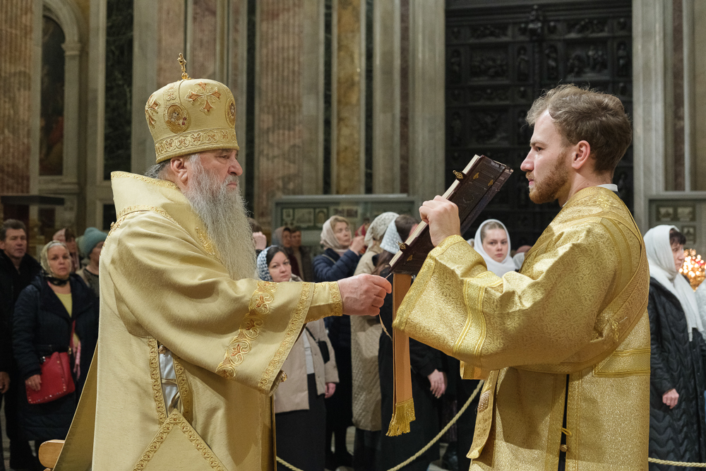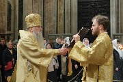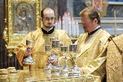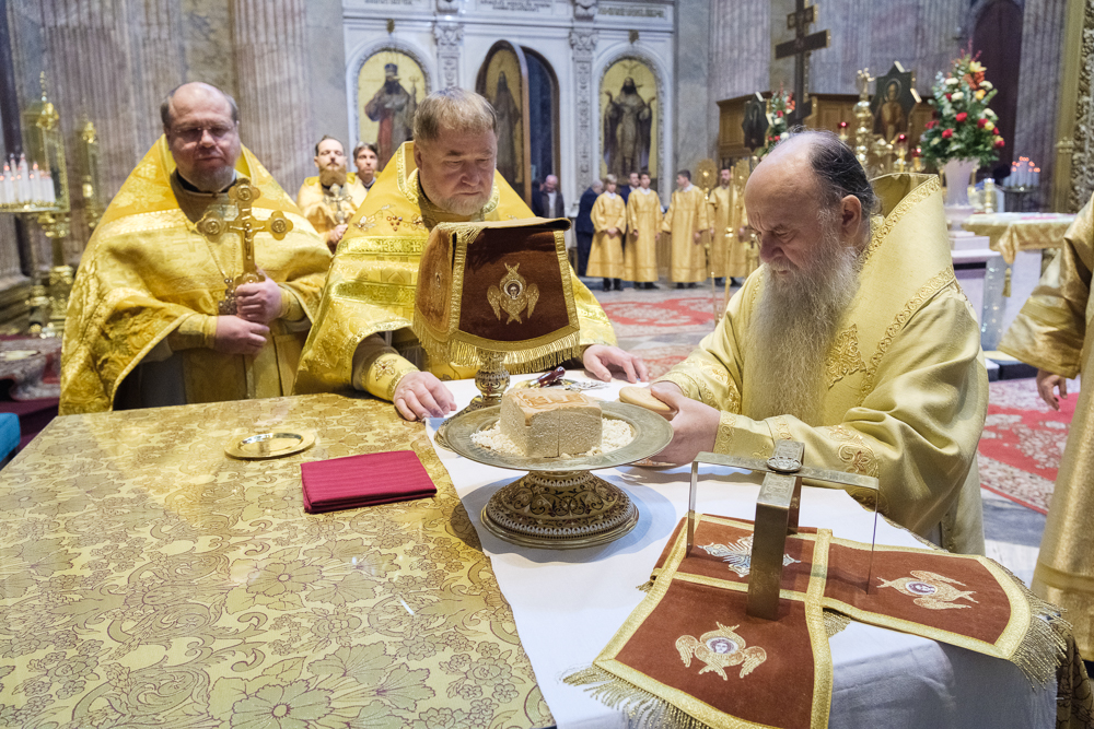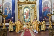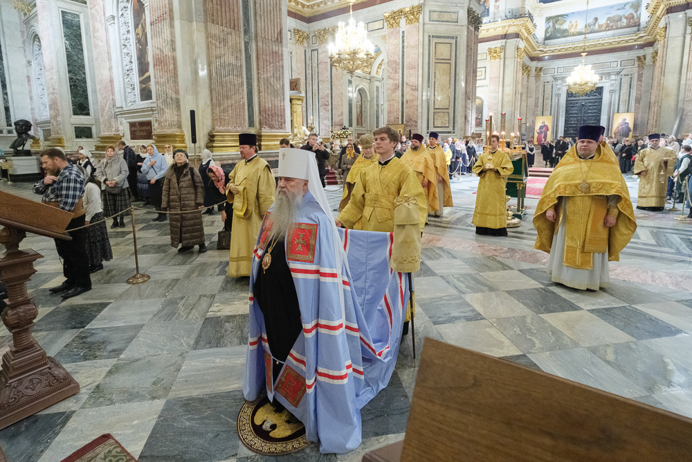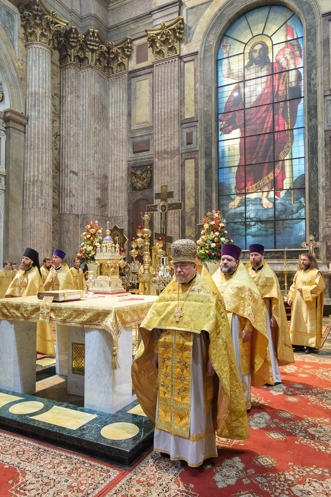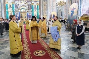 Его Высокопреосвященству сослужили секретарь епархиального управления протоиерей Сергий Куксевич, благочинный Адмиралтейского округа протоиерей Алексий Скляров, ключарь протоиерей Роман Ковальский с клиром и другие священнослужители.