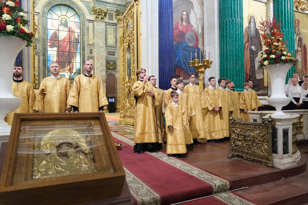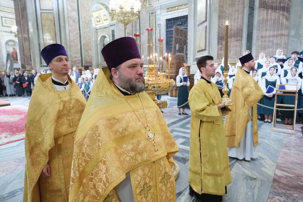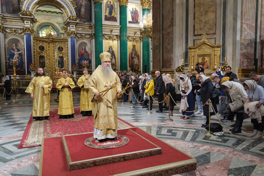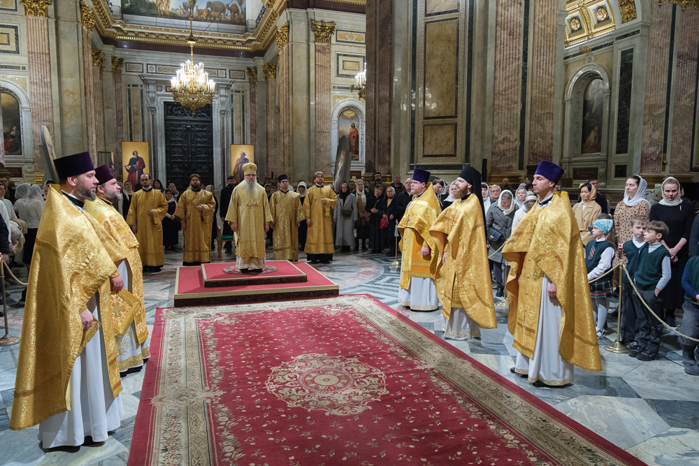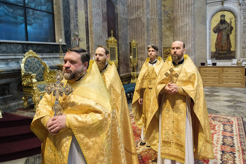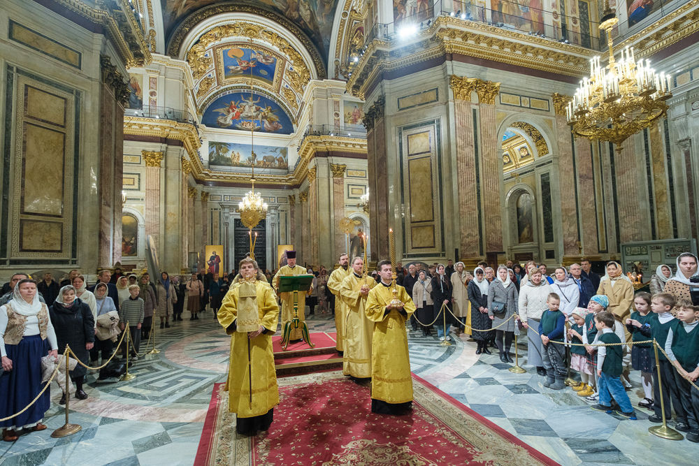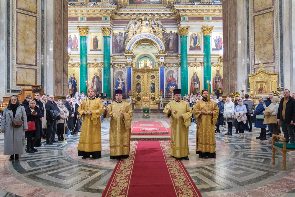 Собор преподобного Исаакия Далматского был задуман императором Петром I, который родился в день памяти этого святого. Современному храму предшествовали три храма, оказавшиеся недолговечными. Четвертый был заложен в 1819 году по проекту Огюста Монферрана. Строился 40 лет. Был освящен 12 июня 1858 года как главный собор Российской империи. Здесь совершались благодарственные молебны в памятные дни петровских побед, торжественно отмечали день основания Санкт-Петербурга. В советское время храм закрыли, в нем разместился антирелигиозный музей. В 1937-м он получил статус памятника, а музею определили историко-художественный профиль. Первое богослужение прошло в 1990 году. С осени 2015-го по договоренности с музеем в соборе ежедневно совершаются утренние и вечерние богослужения.