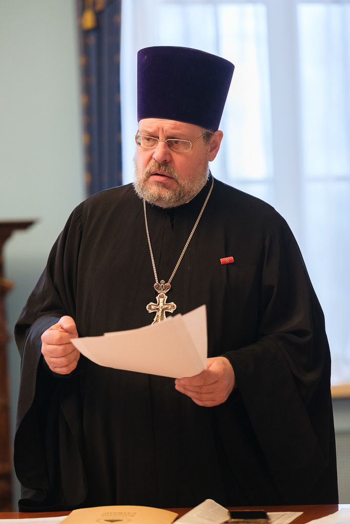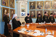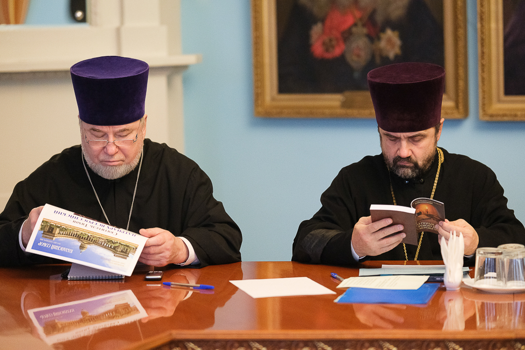 Присутствовали наместник Александро-Невской лавры епископ Кронштадтский Вениамин, секретарь епархиального управления протоиерей Сергий Куксевич, секретарь коллегии протоиерей Александр Пелин, руководители отделов и подразделений.