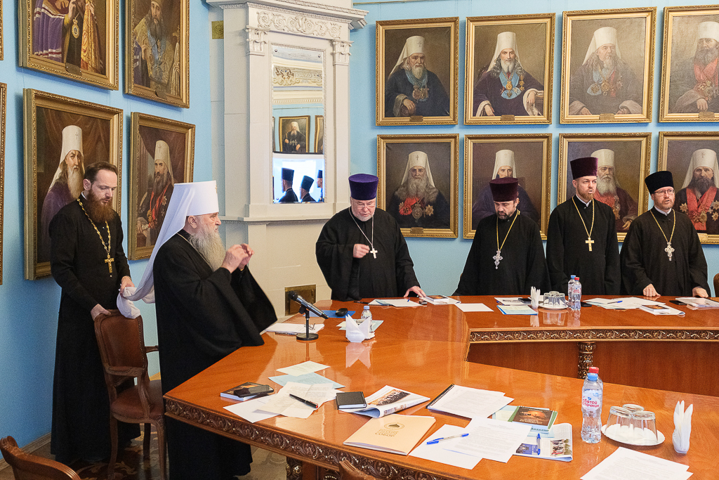 Заседание коллегии епархиальных отделов под председательством митрополита Санкт-Петербургского и Ладожского Варсонофия прошло 11 ноября в Портретном зале епархиального управления.