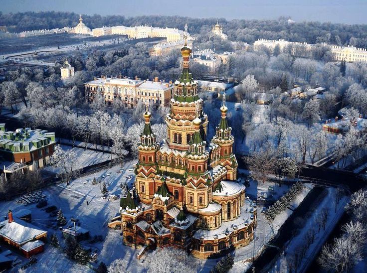 Петропавловский собор Петергофa был возведен в 1899 году по проекту Николая Султанова указом императора Александра III. Освящен в 1905 году в присутствии царской семьи. Помимо главного было устроено еще два придела: левый - во имя небесного покровителя государя святого Александра Невского, правый - во имя святой Ксении Римляныни, небесной покровительницы дочери государя, великой княжны Ксении Александровны. В советское время собор был закрыт. Возвращен верующим в 1989 году. После восстановления центральный престол был освящен 9 июля 1994 года Святейшим Патриархом Алексием II. В 2015 году началась реставрация храма. 18 июля 2019 года был освящен крест на центральном куполе.