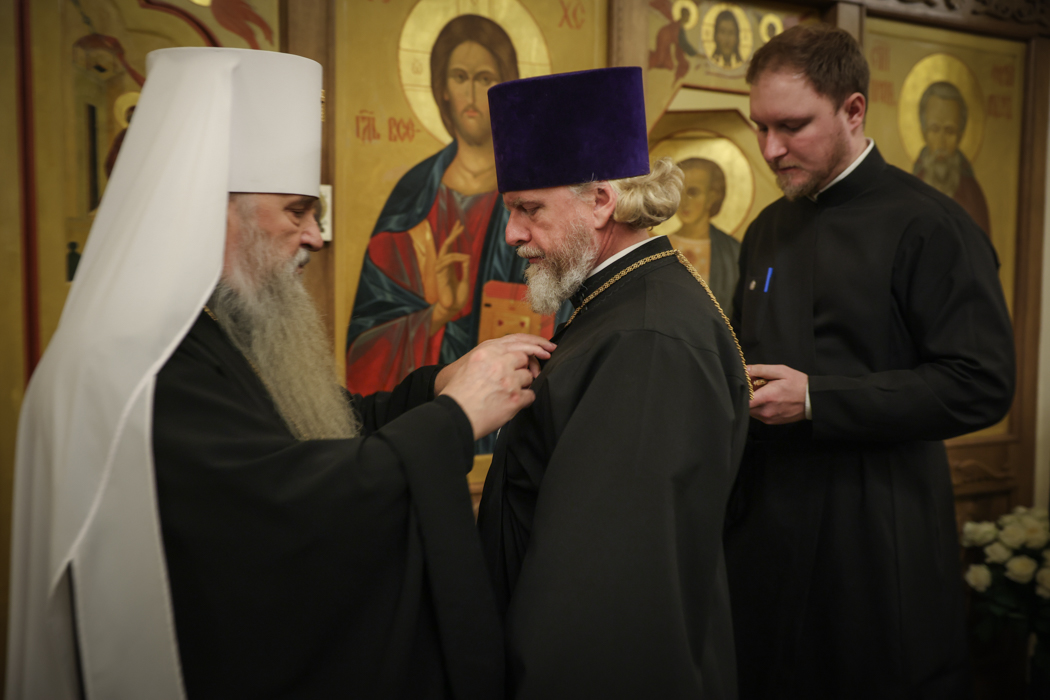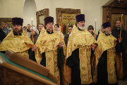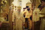 Его Высокопреосвященству сослужили настоятель протоиерей Павел Иванов с клиром, протоиерей Михаил Подолей, благочинный Московского округа иерей Павел Ермошкин и другие священнослужители.