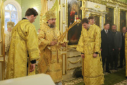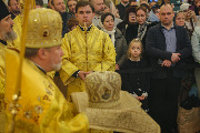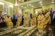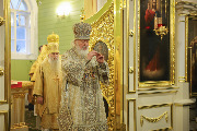 "В этом святом храме будет сохраняться память о его настоятелях, духовенстве, о страницах его истории - не всегда они были светлыми, но благодаря таким подвижникам, как ваш отец, протоиерей Михаил, все-таки и та глухая ночь безбожия была временем, когда "свет во тьме светит и тьма не объяла его" (Ин. 1:5). Этот свет Христовой веры он передал вам. Этот свет вы сегодня снова сюда принесли, совершив великое освящение. Сыновне благодарим вас и желаем вам всесильной помощи Божией, укрепления сил, радости, многих лет жизни и служения во главе нашей Церкви", - завершил слово митрополит Варсонофий.