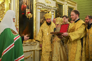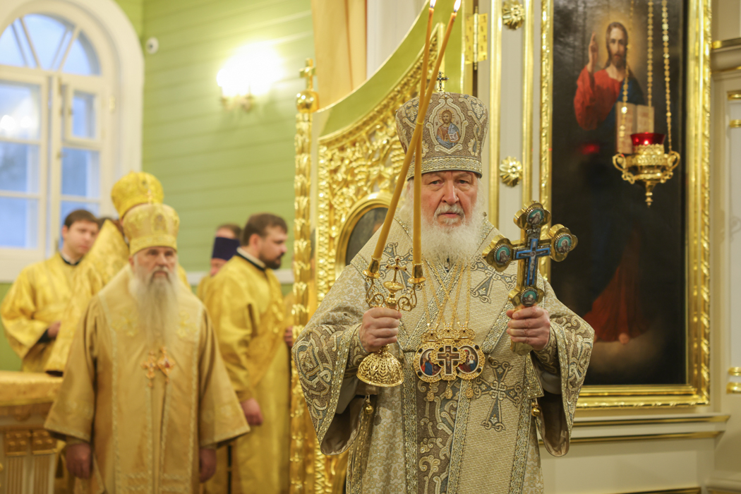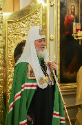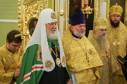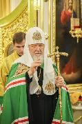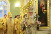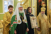 "Еще раз хотел бы поблагодарить владыку Варсонофия, всех, кто трудится в этом храме, и вас, мои дорогие братья и сестры, за хранение веры православной. Наш долг, долг нашего поколения, живущего в такое благоприятное время, - не просто сохранить веру, но и передать ее нашим детям и внукам. Это долг пап и мам, бабушек и дедушек. Ведь Господь на Страшном Суде в первую очередь спросит: "Если кто-то из твоих детей и внуков ушел из Церкви, если кто-то из них стал безбожником - что же ты делал? Что ты говорил? Как ты Мне послужил на своем месте?" Поэтому православное воспитание является непременным условием благополучия семей в этой жизни и спасения души в жизни вечной. Да хранит Господь Отечество наше и сей град, с которым у меня связано так много и в памяти моей, и в опыте моей жизни. И дай Бог, чтобы и дальше развивалась церковная жизнь, укреплялись благочестие и вера в нашем народе. В память о своем посещении я бы хотел подарить этому храму Смоленскую икону Божией Матери. Почему Смоленскую? А потому что после Ленинграда, Санкт-Петербурга меня отправили в Смоленск. Я был непослушным и не вызывал доверия у тогдашних властей, поэтому из Петербурга, где я родился, учился, окончил академию, стал ее ректором, я в одночасье был отправлен в Смоленск - самую бедную в то время епархию. Расскажу еще эпизод, о котором стоит знать. Первая ночь в Смоленске, зеленый домик в садике, и сторож замечательный, святой жизни человек, мне говорит: "Владыка, мы тебе постелили на втором этаже, можешь там спать". Я зашел, внутри все покрашено, все аккуратно. Лег, засыпаю и думаю: "Ну кто же кошку-то запустил? Так спать хочется, а кошка прыгает. Но если сейчас встану и буду ее прогонять - точно не засну". Наконец заснул. Просыпаюсь утром и говорю сторожу: "Николай Иванович, а кошку-то зачем запустили?" А он в ответ: "Владыка, это не кошка - это крыса". Вот с этого началось, после Ленинграда тогдашнего, мое служение в Смоленске. Но надо было через все это пройти, чтобы узнать русскую глубинку, почувствовать скорбь нашего народа, его стремление к вере православной - все то, что мне очень помогло и помогает сейчас в моем Патриаршем служении. Еще и еще раз хочу сказать, что Красное Село и этот храм - особый этап в моей жизни и жизни моих родителей. Поэтому с особым чувством я совершал сегодня богослужение и радуюсь тому, как вас сегодня много, и тому, какой народ стоит в храме. Конечно, и старушки есть, но с первого взгляда даже и не увидишь; но они тоже нам очень нужны, потому что бабушки - это великая сила воспитания детей и внуков. Еще раз, мои дорогие, сердечно поздравляю с праздником и благодарю всех за общие молитвы. Позволил себе поделиться с вами воспоминаниями, чтобы еще и еще раз подчеркнуть. что Церковь наша, пройдя через тяжелейшие испытания атеизмом, сегодня стала сильной настолько, что в наше время, связанное с особым этапом научно-технического развития человеческой цивилизации, она способна нести свое слово нашему народу, укрепляя его в православной вере. Что все мы видим и за что Бога благодарим - начиная с нашего православного президента и кончая простыми людьми, которые наполняют наши храмы так же, как они наполнялись в страшное безбожное время. Всех благодарю за вашу верность Церкви. Храни Господь приход наш в сем святом месте и всех вас в добром здравии, духовной силе и крепости", - завер