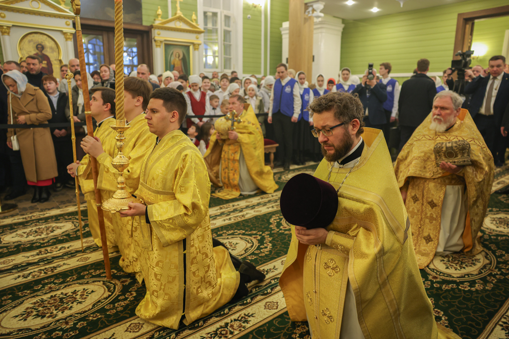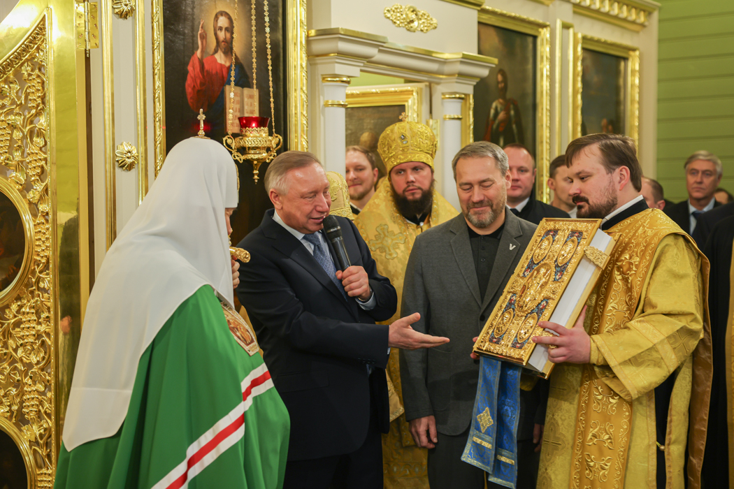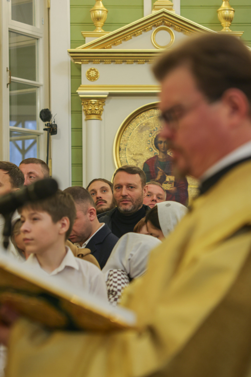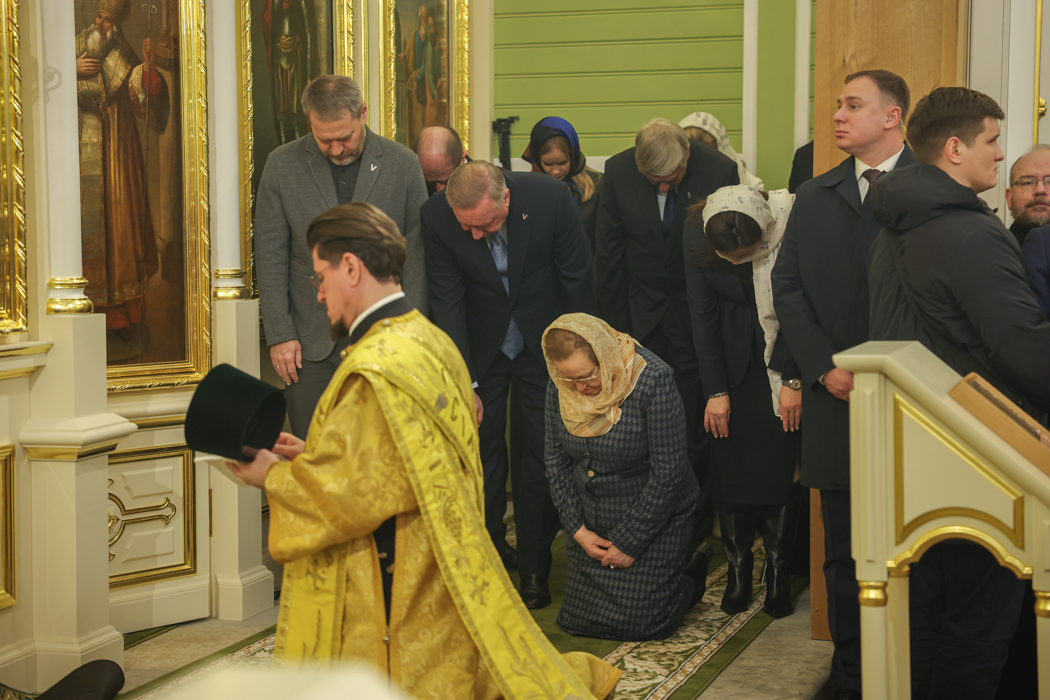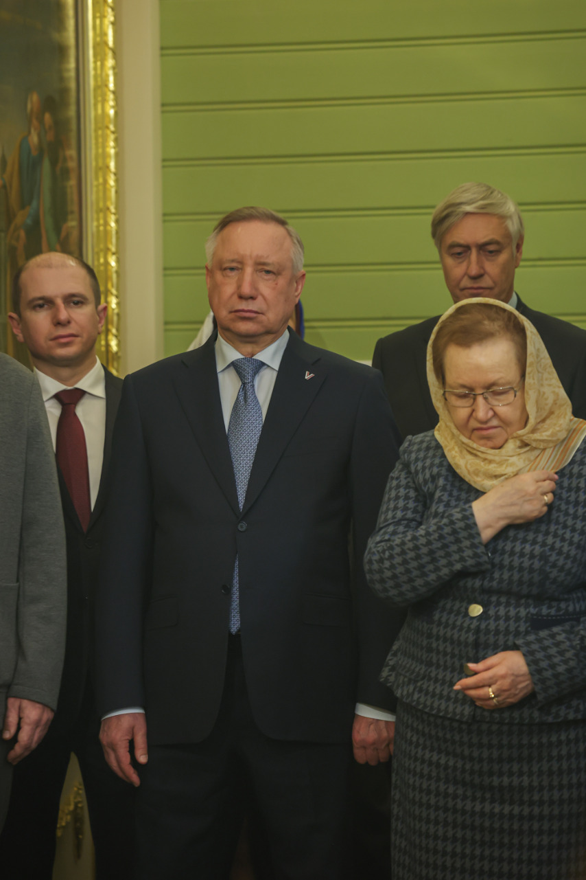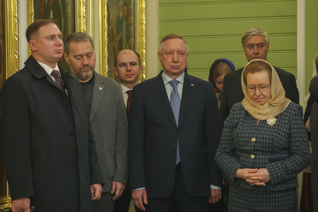 Среди молящихся были губернатор Александр Беглов, председатель Заксобрания Александр Бельский, депутат Госдумы Михаил Романов, глава администрации Красносельского района Ольга Акацевич, декан факультета церковных искусств СПбДА Елена Гундяева.