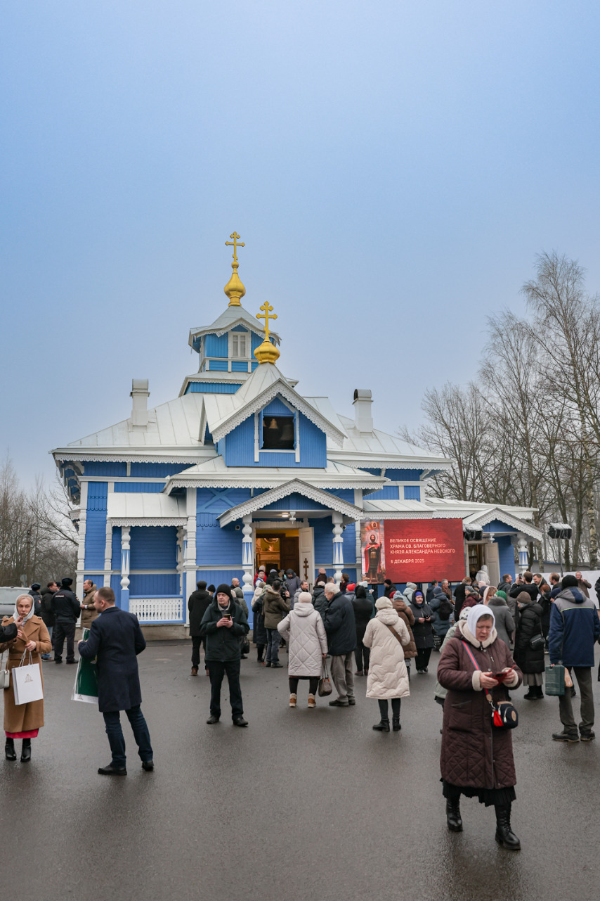 Храм святого благоверного князя Александра Невского в Красном Селе был заложен в 1897 году великим князем Владимиром Александровичем Романовым в память о недавно почившем брате - императоре Александре III и посвящен его небесному покровителю. Проект церкви в неорусском стиле принадлежит военному инженеру полковнику Владимиру Колянковскому. Церковь относилась к военному ведомству и была приписана к Красносельскому военному госпиталю, прихожанами были чины военного госпиталя и гарнизона, а также местные жители. После октябрьского переворота 1917 года церковь стала приходской. В 1932 году храм был закрыт и передан соседней воинской части под подсобное помещение. Во время Великой Отечественной войны Красное Село оказалось в зоне оккупации. По просьбам местных жителей немецкое командование разрешило открыть храм, который действовал в 1942-1943 годах. После войны Александро-Невская церковь оставалась единственной уцелевшей в этом районе, и прихожане добились ее повторного открытия. В 1947 году храм отремонтировали и заново освятили. С 1960-го по 1970 год настоятелем был протоиерей Михаил Гундяев, отец Святейшего Патриарха Кирилла. В 1995 году храм включен в число объектов исторического и культурного наследия как памятник архитектуры федерального значения. Под патронатом Министерства культуры РФ с 2020-го по 2025 год прошла полномасштабная реставрация храма.