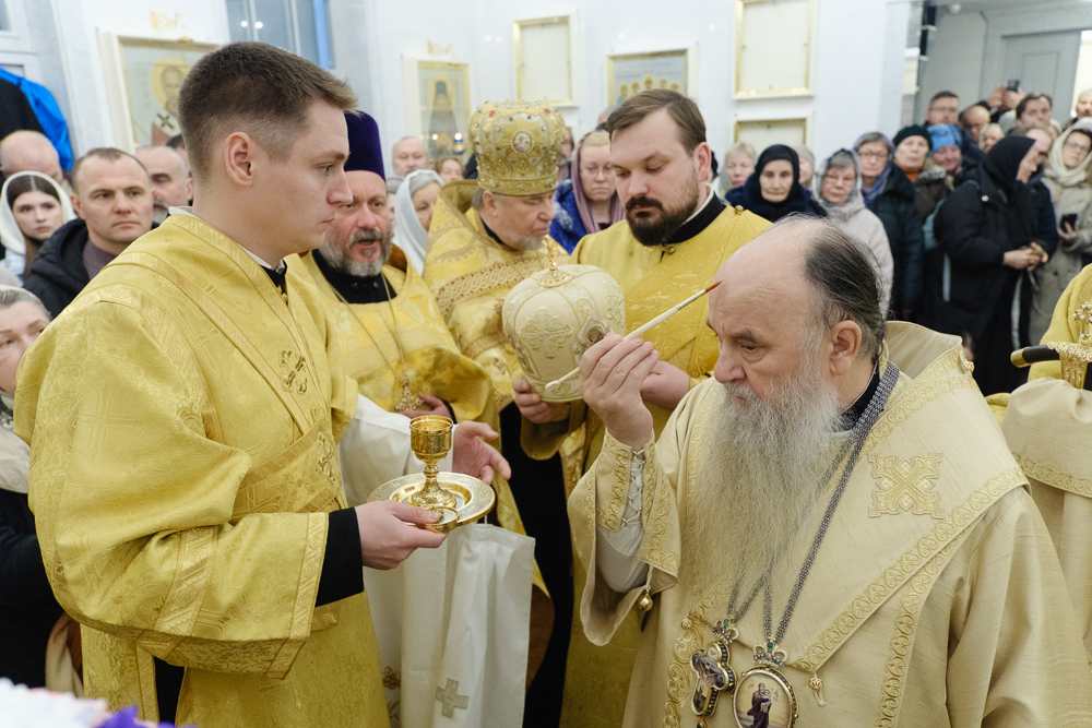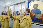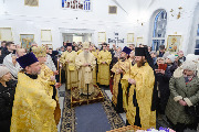 Его Высокопреосвященству сослужили секретарь епархиального управления протоиерей Сергий Куксевич, благочинный Фрунзенского округа протоиерей Алексий Исаев, настоятель протоиерей Артемий Белобородов с клиром и другие священнослужители.